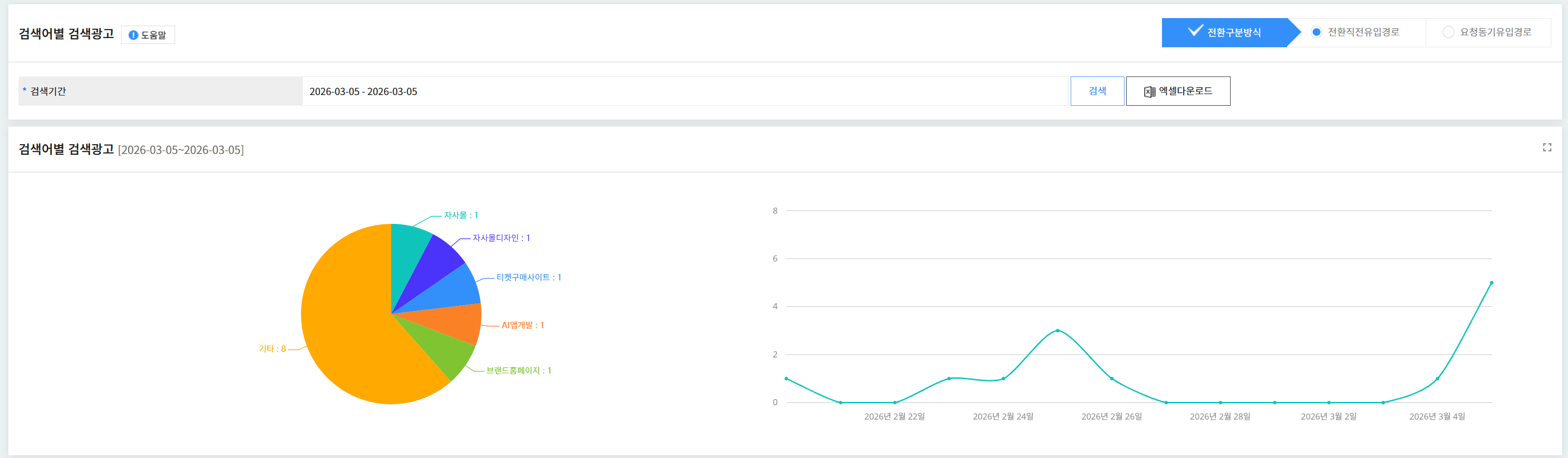 · 검색광고 중 "홈페이지 제작" 키워드로 유입: 5건