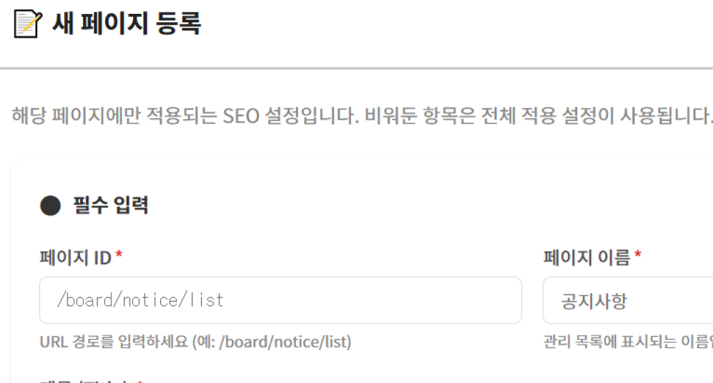 SEO 누락 방지: 특정 페이지에 개별 설정을 하지 않더라도 '전체 설정'이 안전망 역할을 하여 검색 노출 기회를 보호합니다.
