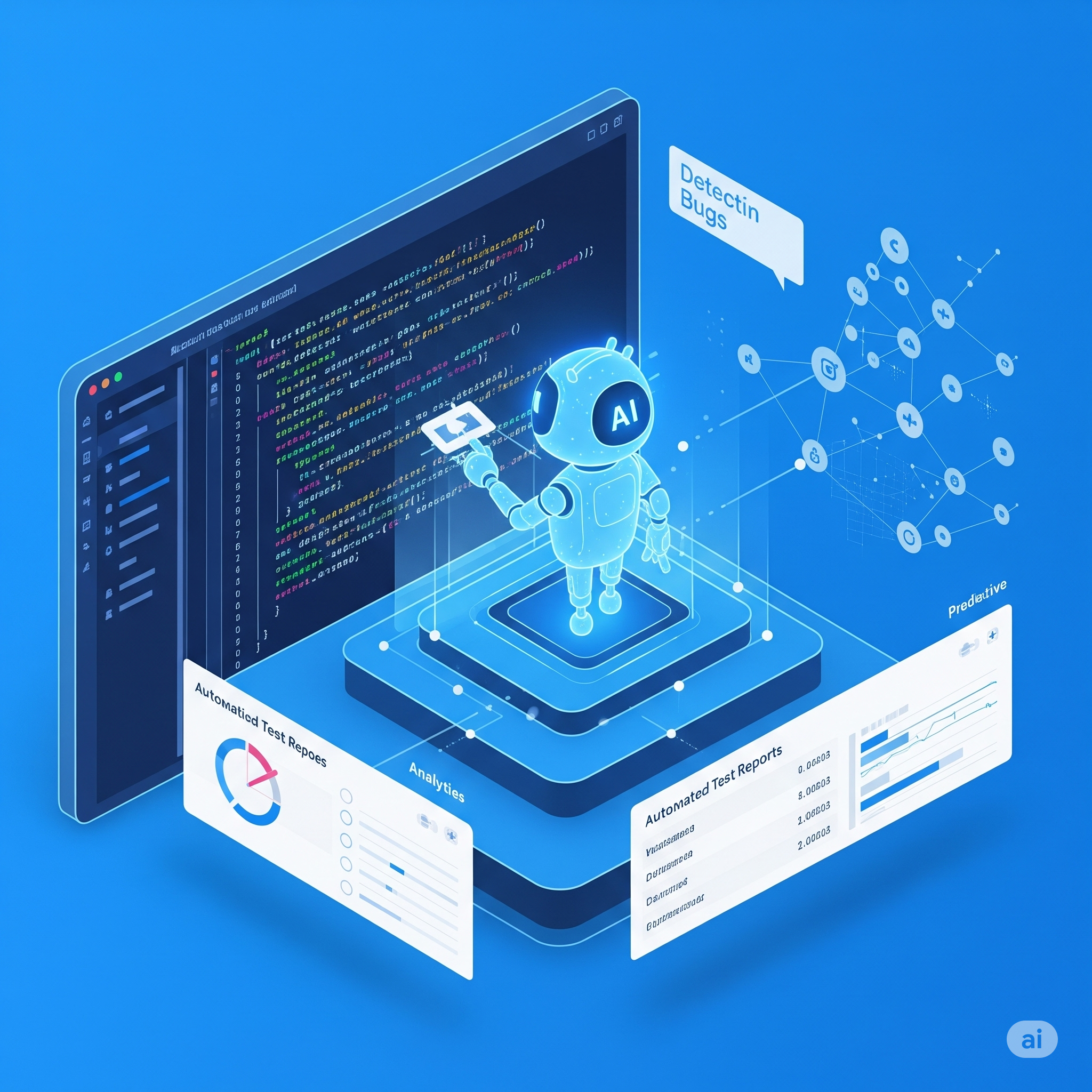 AI는 과거 테스트 데이터에서 패턴을 분석해서 앞으로 결함이 발생할 가능성이 높은 코드 영역을 예측해주고, UI 변경에 자동으로 적응하는 '자가 치유(self-healing)' 테스트를 통해