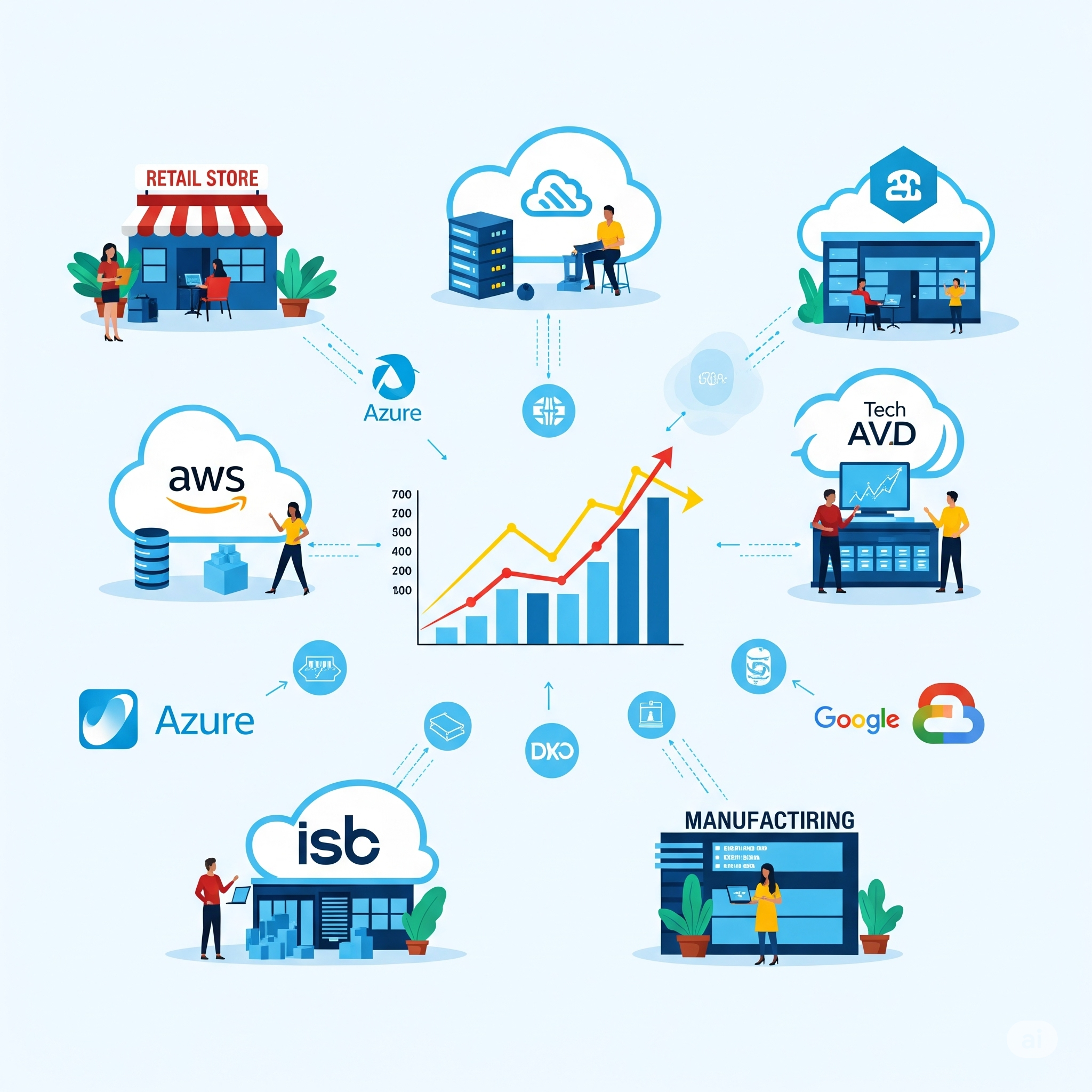 기술적 특징: AWS, 마이크로소프트 애저, 구글 클라우드, 오라클 클라우드, 알리바바 클라우드 등