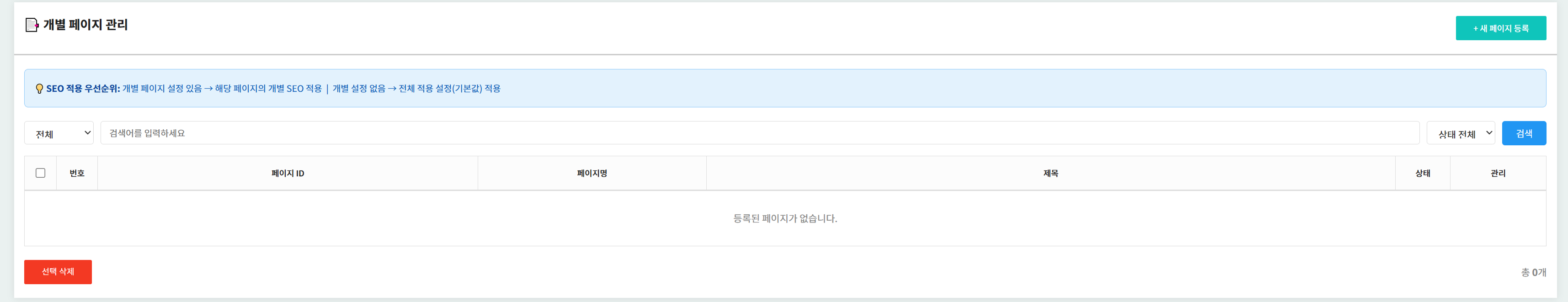 사이트 전체 기본값 설정 + 페이지별 개별 설정 모두 지원