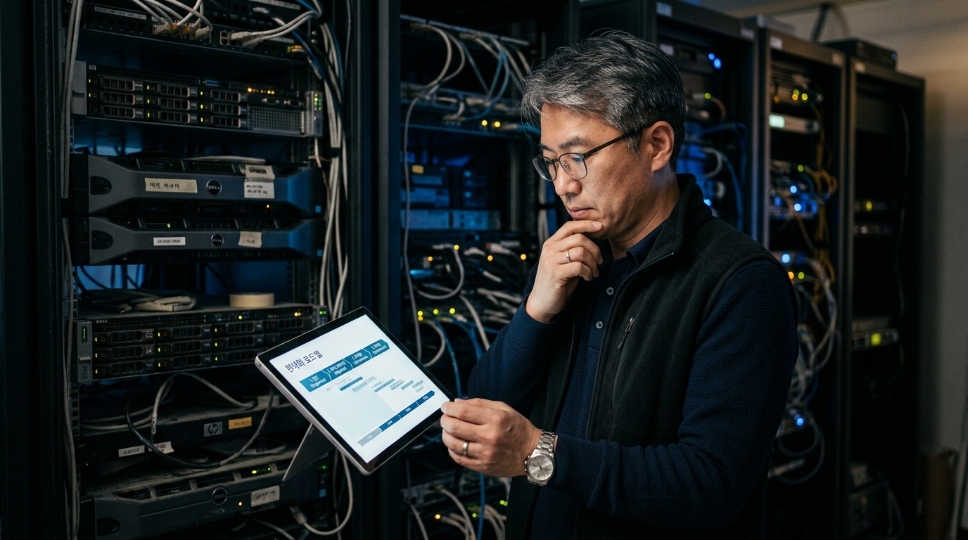 첫째, 기술 스택 감사(Technical Audit) 입니다. 현재 사용 중인 언어, 프레임워크, 데이터베이스, 서버 환경, 외부 연동 API 목록을 전수 조사합니다. 특히 공급사 지원이 종료된 버전(End-of-Life)이 있는지, 내부에서만 작동하는 블랙박스 로직이 있는지를 파악하는 것이 핵심입니다. 실제로 많은 기업에서 담당자조차 모르는 레거시 모듈이 운영 중인 경우가 허다합니다.