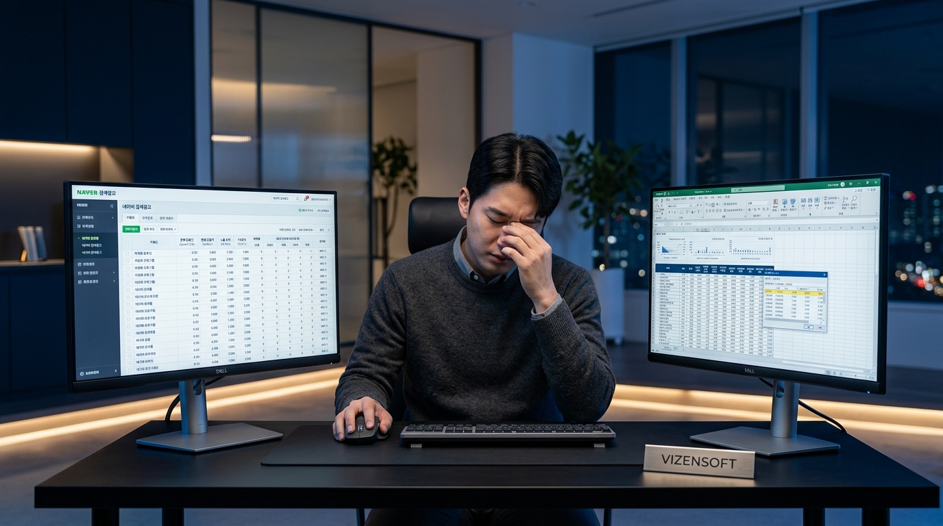 네이버 검색광고 관리 시스템에서 캠페인별 실적을 확인하고, 키워드별 순위를 체크하고, 비즈머니 잔액을 따로 확인하고… 현황 파악에만 30분 이상을 소비하는 경우가 허다합니다.