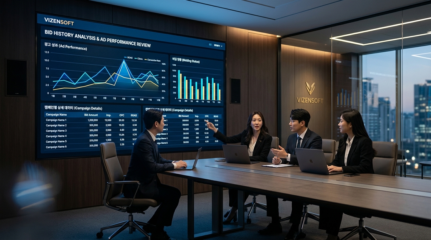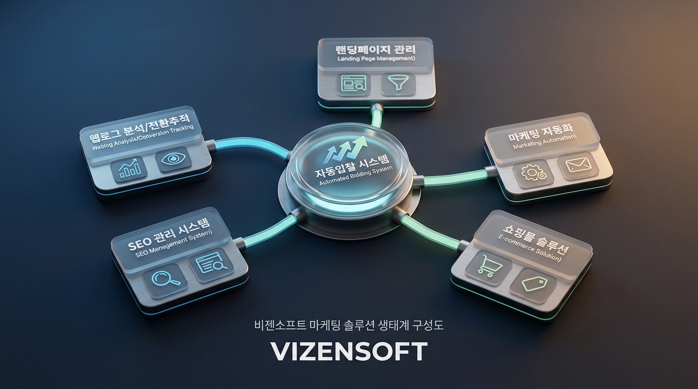 이것이 비젠소프트만의 통합 마케팅 생태계입니다. 타사 자동입찰 도구는 "입찰 자동화"만 제공하지만, 비젠소프트는 광고 → 유입 → 분석 → 전환 → 재방문까지 전체 마케팅 퍼널을 하나의 파트너와 함께 최적화할 수 있습니다.