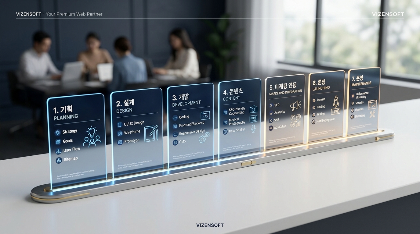 Q4. 의료광고법 때문에 홈페이지 콘텐츠에 제약이 많지 않나요? A. 맞습니다. 의료법 제56조에 따라 허위·과장 광고, 비급여 가격 비교 광고, 특정 시술 효과를 보장하는 표현 등은 규제됩니다. 하지만 이 제약 안에서도 의사 전문성 강조, 시술 과정 상세 설명, 환자 교육 콘텐츠 등을 통해 충분한 설득력을 갖춘 홈페이지를 만들 수 있습니다. 비젠소프트는 의료법 가이드라인을 숙지한 상태에서 콘텐츠 전략을 수립합니다.