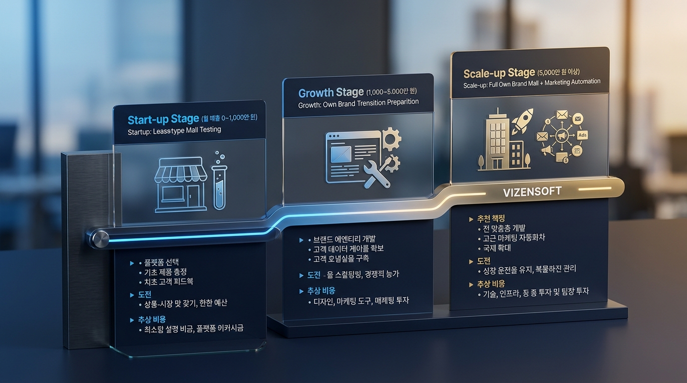 반대 사례도 있습니다. 창업 초기부터 무턱대고 고비용 커스텀 자사몰을 구축했다가, 트래픽이 부족해 투자 대비 효과를 전혀 못 본 채 6개월 만에 사업을 접은 B사의 경우처럼요. 이처럼 플랫폼 선택의 타이밍과 전략은 사업의 생사를 가릅니다.