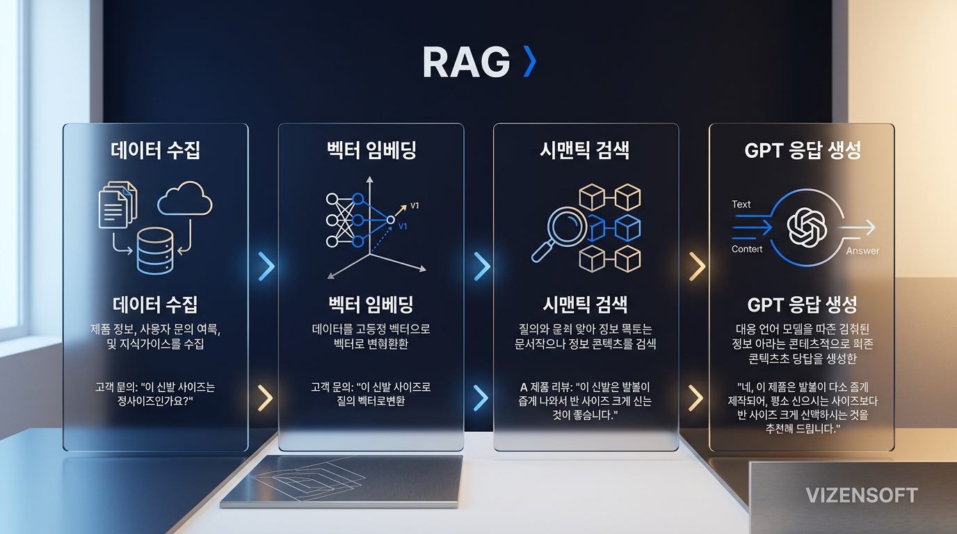 비젠소프트의 AI 챗봇 솔루션은 이 RAG 아키텍처를 기본 탑재하고 있으며, 기업 데이터 연동부터 벡터DB 구축, GPT API 연결까지 원스톱으로 제공합니다. 자체 기술팀 없이도 전문적인 GPT 챗봇 구축이 가능한 이유가 바로 여기에 있습니다.
