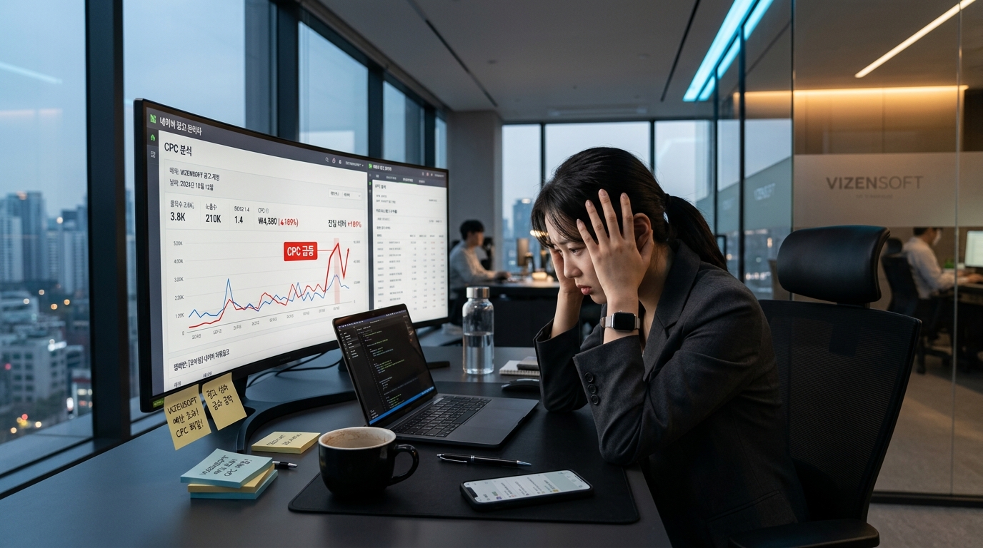 이게 단순히 시간 낭비 문제가 아닙니다. 네이버 검색광고에서 입찰가를 수동으로 관리하는 기업 중 상당수가 최적 입찰가 대비 평균 15~35% 더 많은 CPC 비용을 지불하고 있다는 분석 데이터가 있습니다. 월 광고 예산이 500만 원이라면 최대 175만 원이 비효율적으로 소진되고 있다는 뜻입니다. 연간으로 환산하면 2,000만 원이 넘는 금액이 최적화되지 못한 채 그냥 사라지는 셈이죠.