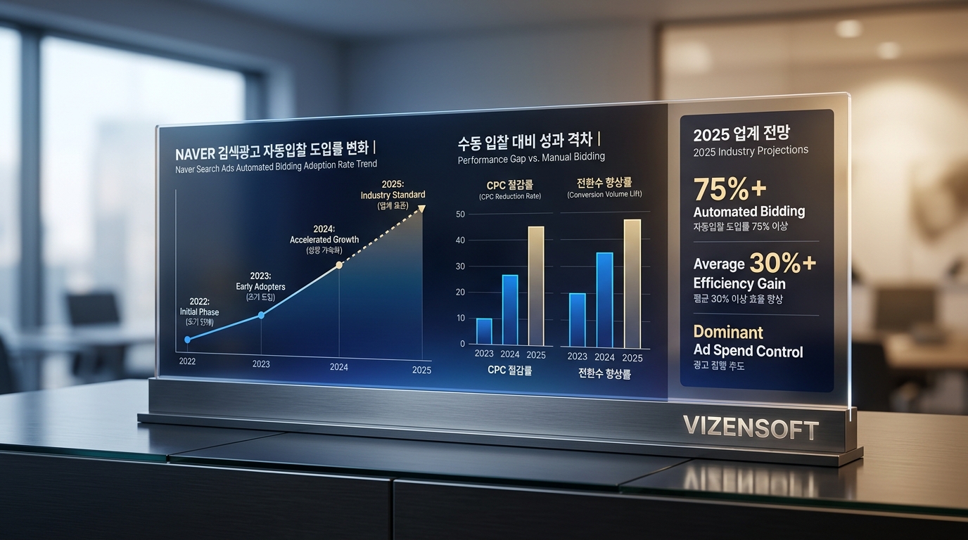 네이버 광고 생태계에서도 이 흐름은 뚜렷합니다. 자동입찰과 전환추적 시스템을 연동한 통합 광고 운영이 표준화되고 있으며, 전문 대행사들조차 수동 입찰보다 AI 기반 자동화 도구를 적극 활용하는 방향으로 전환하고 있습니다. 이런 흐름에서 수동 입찰만 고집하는 것은 자전거로 고속도로에서 경쟁하는 것과 다름없습니다.