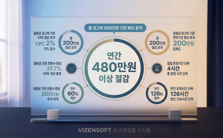 비젠소프트의 AI 네이버 검색광고 자동입찰 시스템은 단순한 입찰 자동화 도구가 아닙니다. 전환추적, 웹로그 분석, 랜딩페이지 최적화, SEO 관리까지 통합된 디지털 마케팅 인텔리전스 플랫폼입니다. 광고비를 '쓰는' 것에서 '투자'로 바꾸고 싶으시다면, 지금 바로 비젠소프트에 문의해 주세요. 귀사의 광고 계정을 분석하여 예상 절감 효과와 최적화 전략을 제안드리겠습니다. 아래 서명 블록을 통해 연락 주시기 바랍니다. 🚀