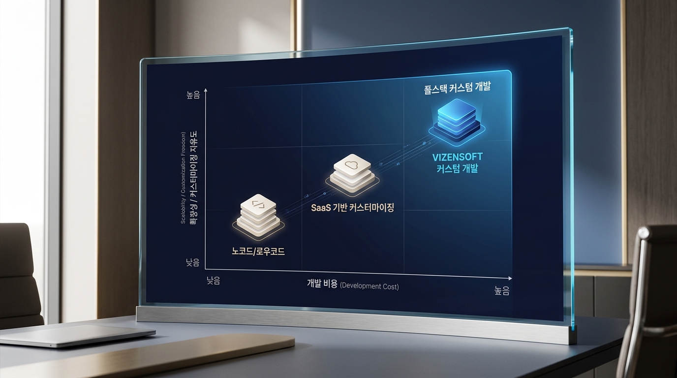 위 표에서 보듯이, 단기 초기 비용만 보면 SaaS 플랫폼이 압도적으로 저렴해 보이지만, 5년 장기로 보면 커스텀 개발의 총비용이 훨씬 낮은 경우가 많습니다. 특히 매출이 성장할수록 수수료 부담이 기하급수적으로 늘어나는 SaaS 모델의 함정을 반드시 고려해야 합니다.
