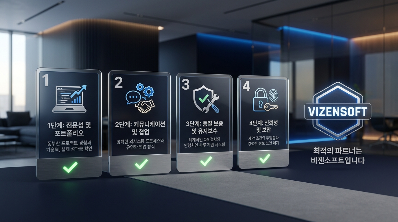 이처럼 프로그램 개발 외주 견적을 비교할 때 가격만 보는 것은 매우 위험합니다. 각 업체의 견적에 무엇이 포함되고 무엇이 제외되었는지, 구체적인 기능 목록을 명시한 문서가 있는지를 반드시 확인해야 합니다. 비젠소프트는 모든 프로젝트에 앞서 상세한 기능 명세 및 개발 범위 정의 과정을 체계적으로 진행하여, 의뢰인이 견적 내용을 명확히 이해하고 프로젝트를 시작할 수 있도록 지원합니다.