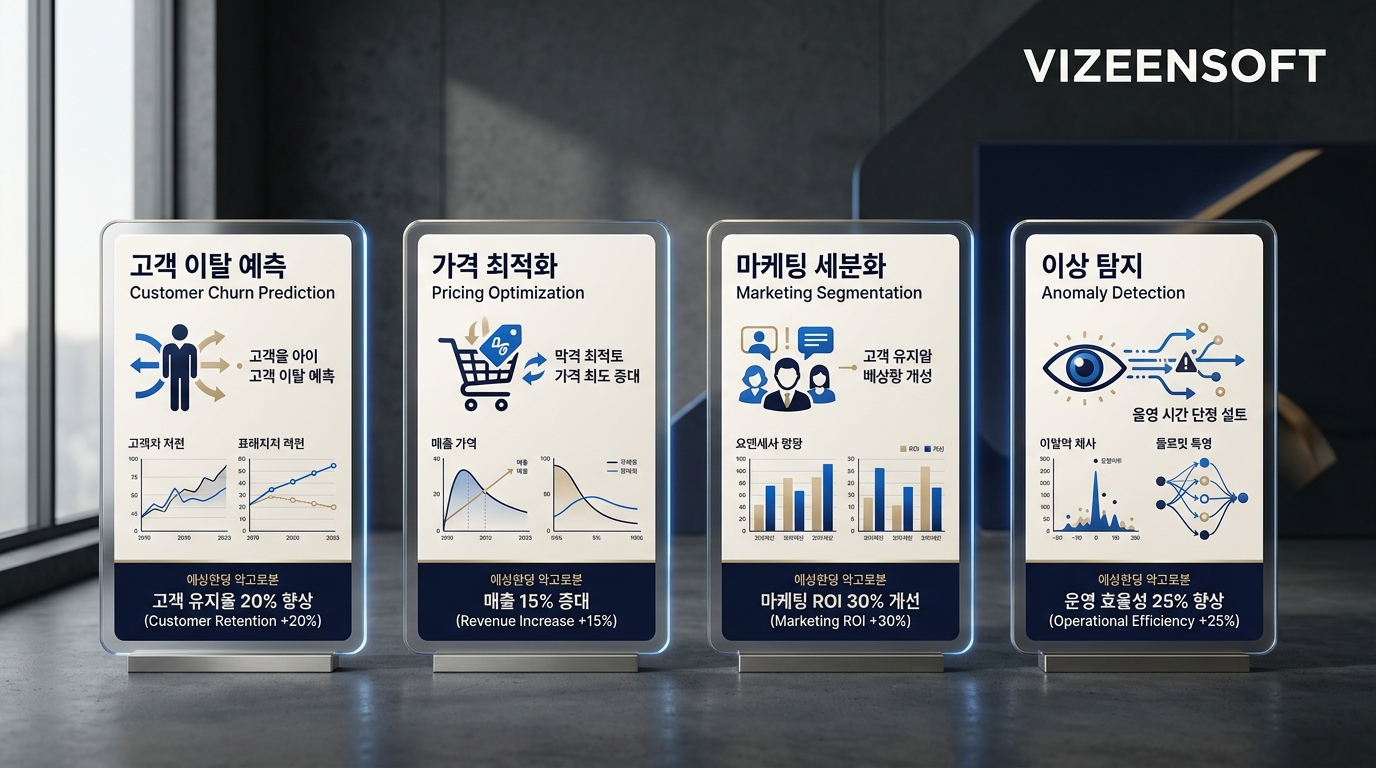 핵심은, 머신러닝은 정형 데이터 + 명확한 예측 목표 + 빠른 시장 진입이 중요한 상황에서 최고의 선택이라는 점입니다. 비젠소프트가 다양한 기업의 AI 챗봇과 마케팅 자동화 시스템을 개발하면서 가장 먼저 권장하는 접근 방식도 바로 이 "필요한 수준에 맞는 기술 선택"입니다.