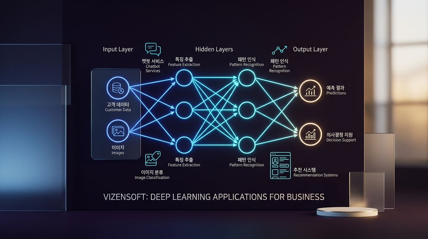 자연어 처리(NLP, Natural Language Processing) 분야는 최근 가장 뜨거운 영역입니다. GPT, BERT, LLaMA로 대표되는 대형 언어 모델(LLM)은 모두 딥러닝의 Transformer 구조를 기반으로 합니다. 고객 리뷰 감성 분석, AI 챗봇, 문서 자동 요약, 계약서 분석, 다국어 번역 등에서 딥러닝 기반 NLP 모델은 기존의 어떤 머신러닝 기법도 따라올 수 없는 성능을 보여줍니다. 실제로 비젠소프트의 AI 챗봇 솔루션도 딥러닝 기반 자연어 이해(NLU) 엔진을 활용하여 단순 키워드 매칭을 넘어 문맥을 이해하는 대화가 가능합니다.