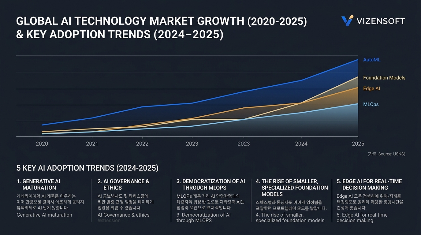 Google AutoML, H2O.ai, AutoKeras 같은 도구들이 비전문가도 수준급 머신러닝 모델을 만들 수 있게 해주고 있습니다. 2025년 현재 글로벌 AutoML 시장 규모는 연간 30% 이상의 성장률을 보이고 있으며, 이는 중소기업의 AI 도입 장벽을 크게 낮추고 있습니다. 하지만 AutoML이 만능은 아닙니다. 기업 고유의 도메인 지식과 데이터를 반영한 커스텀 모델은 여전히 전문 개발이 필요합니다.