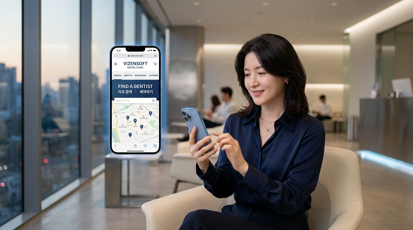 그렇다면 지금 우리 치과 홈페이지는 이런 잠재 환자들에게 어떤 인상을 주고 있을까요? 2010년대 초에 만들어진 낡은 디자인, PC에서만 제대로 보이는 레이아웃, 찾기 힘든 진료 정보, 진입장벽 높은 예약 시스템… 이런 홈페이지를 가진 치과라면, 지금 이 순간에도 수많은 잠재 환자들이 경쟁 치과로 발길을 돌리고 있을 가능성이 높습니다.