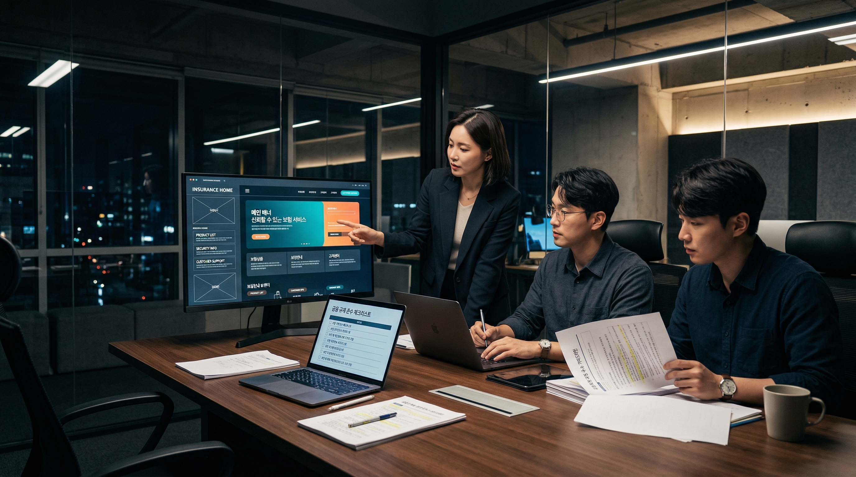 한 중소형 보험사의 사례를 들어볼까요. A보험사는 디자인 에이전시에 의뢰해 시각적으로 세련된 웹사이트를 제작했습니다. 반응형 디자인에 깔끔한 레이아웃, 고화질 이미지까지 갖췄죠. 그런데 오픈 직후 금융감독원 점검에서 필수 고지 사항 미기재, 광고 표시 규정 위반, 개인정보 처리방침 불충분 등 3가지 항목에서 시정 명령을 받았습니다. 더 심각한 문제는 그 과정에서 소비자 커뮤니티에 "A보험사 홈페이지 뭔가 이상하다"는 글이 퍼지면서 신규 문의가 한 달 새 약 40% 감소했다는 것입니다.