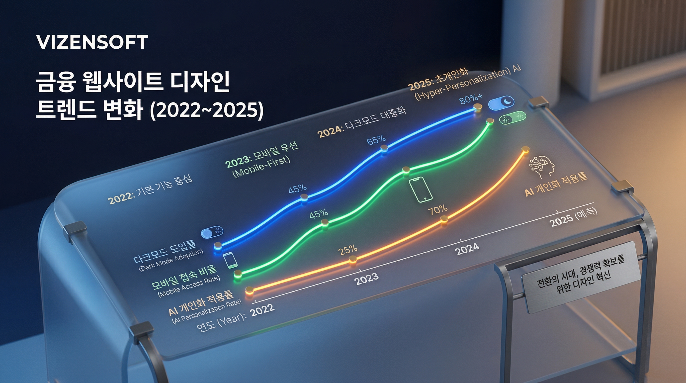 금융디자인 분야는 그 어느 업종보다 빠르게 변화하고 있습니다. 전통적인 "무겁고 딱딱한 금융 웹사이트"의 시대는 지나갔습니다. 2024~2025년 금융 웹사이트 디자인을 지배하는 트렌드를 정리해드립니다.
