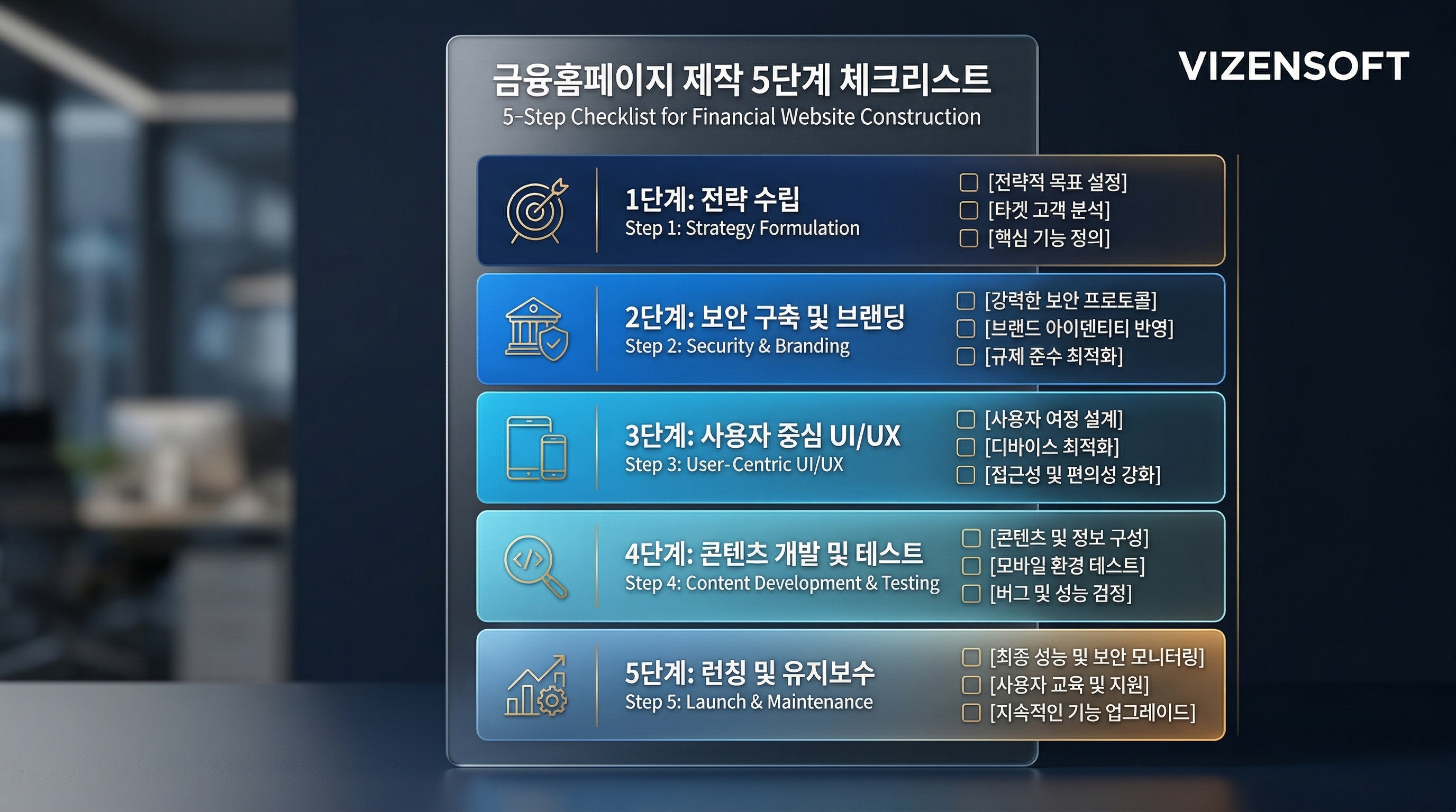 금융홈페이지 프로젝트를 시작할 때 반드시 점검해야 할 항목들을 단계별로 정리했습니다. 이 체크리스트를 제작 파트너에게 공유하면 프로젝트 방향성을 처음부터 명확히 잡을 수 있습니다.