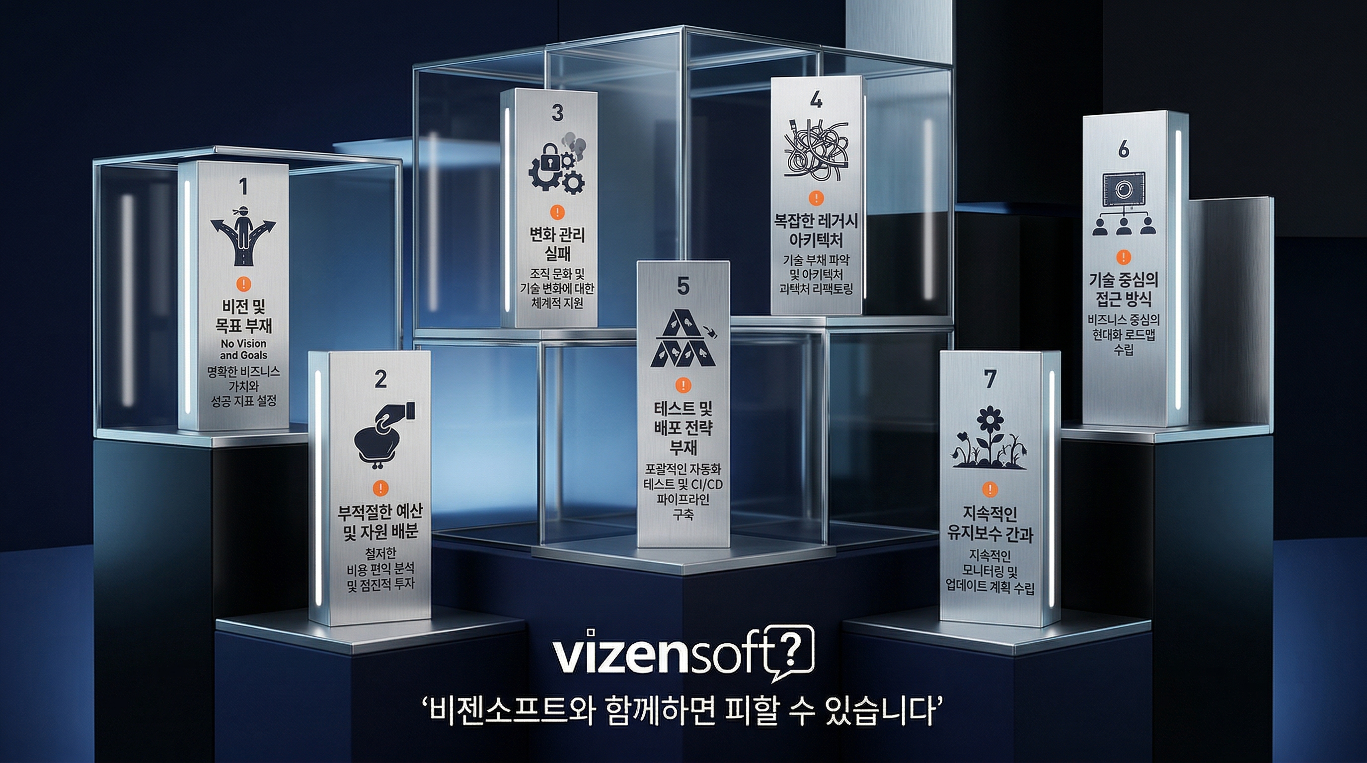 레거시 현대화 프로젝트의 실패율은 전 세계적으로 60~70%에 달합니다 (McKinsey Global Survey, 2023). 즉, 10개 프로젝트 중 6~7개는 예산 초과, 일정 지연, 기능 미달성 중 하나 이상의 문제로 실패합니다. 이 함정들을 미리 알고 피하는 것만으로도 성공 확률을 크게 높일 수 있습니다.