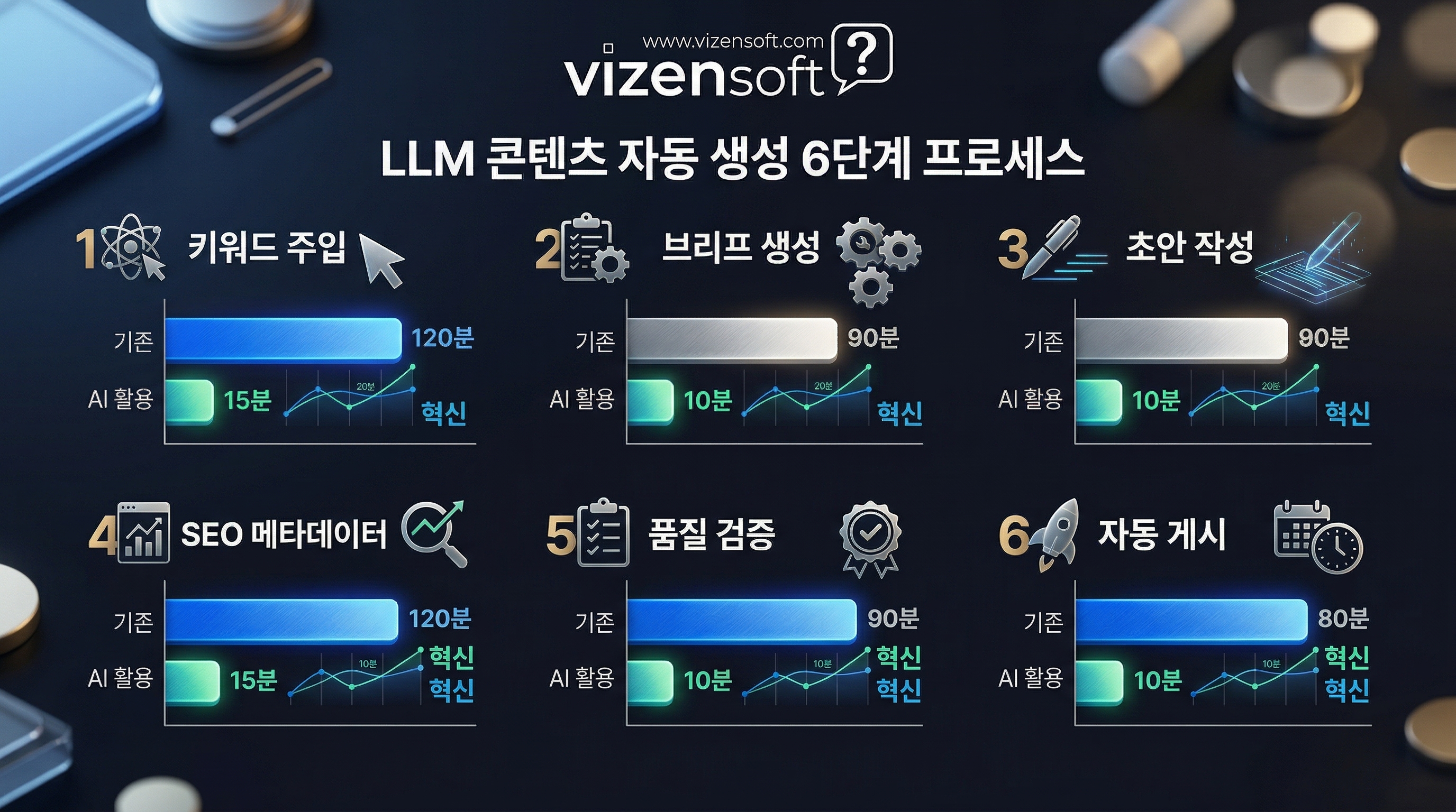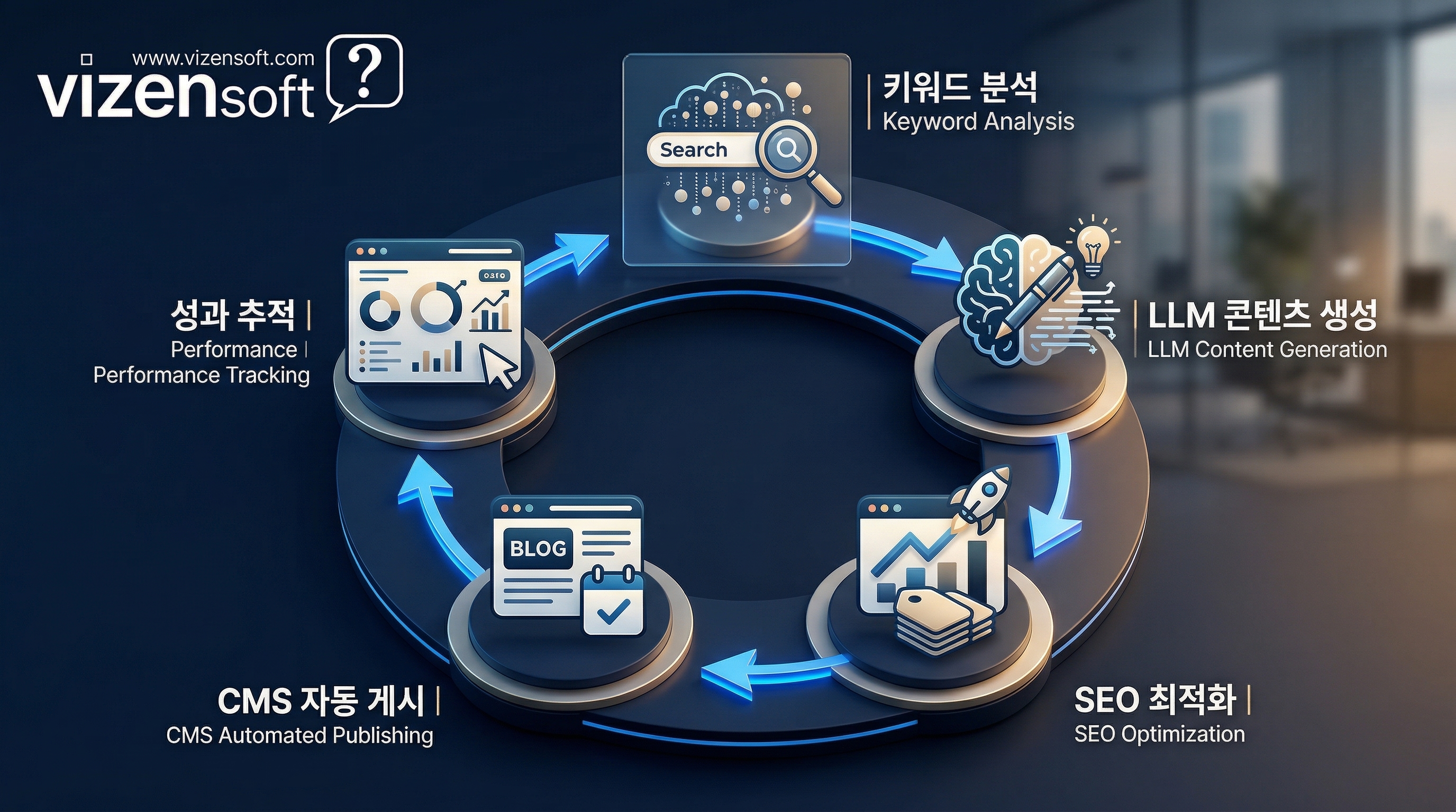 비젠소프트의 마케팅 자동화 시스템은 이러한 LLM 기반 콘텐츠 파이프라인을 기업 환경에 맞게 커스터마이징하여 구축하는 것을 지원합니다. 표준 SaaS 도구로는 커버하기 어려운 자체 CMS 연동, 내부 검수 워크플로우, 브랜드 가이드라인 자동 적용 기능을 맞춤형으로 개발할 수 있습니다.