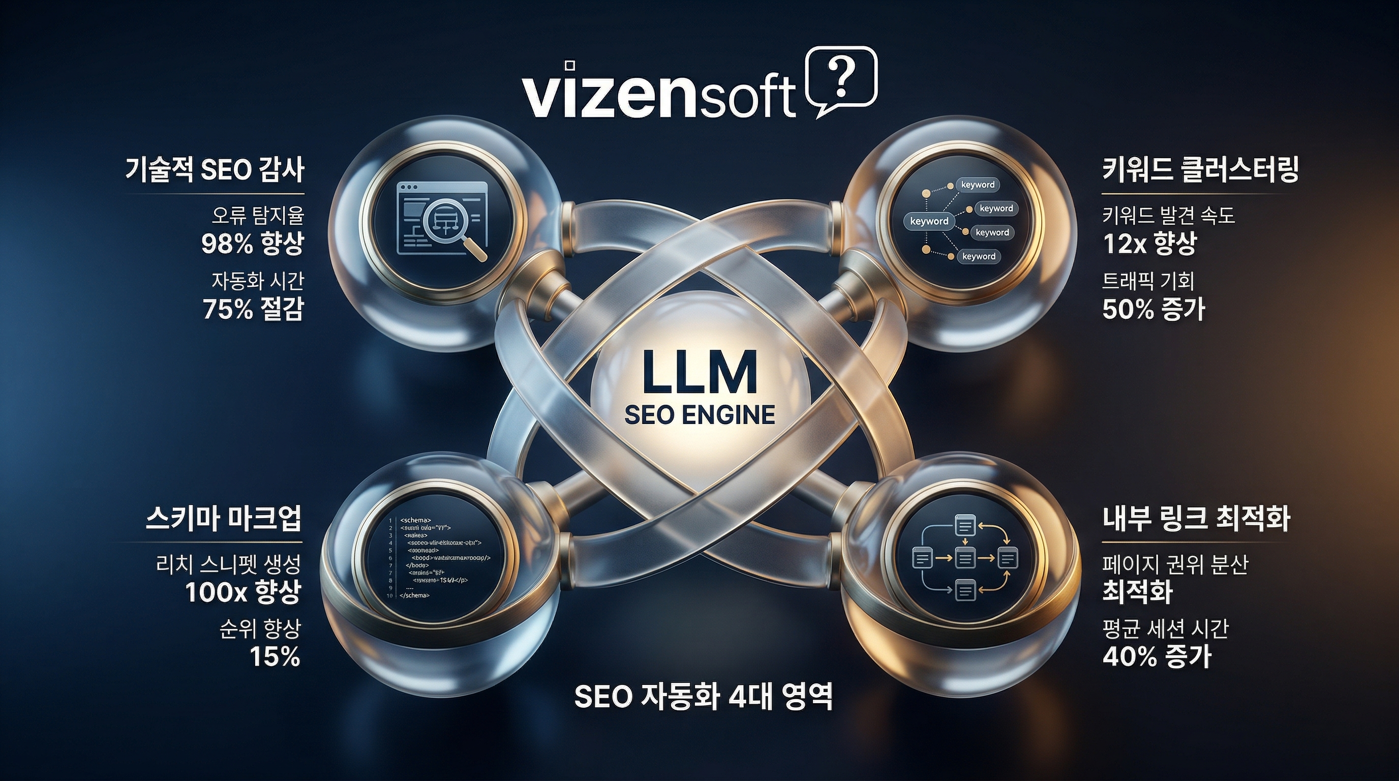 🔍 SEO 작업 자동화율: 기술적 SEO 감사, 메타데이터 생성 등 반복 작업 80% 이상 자동화