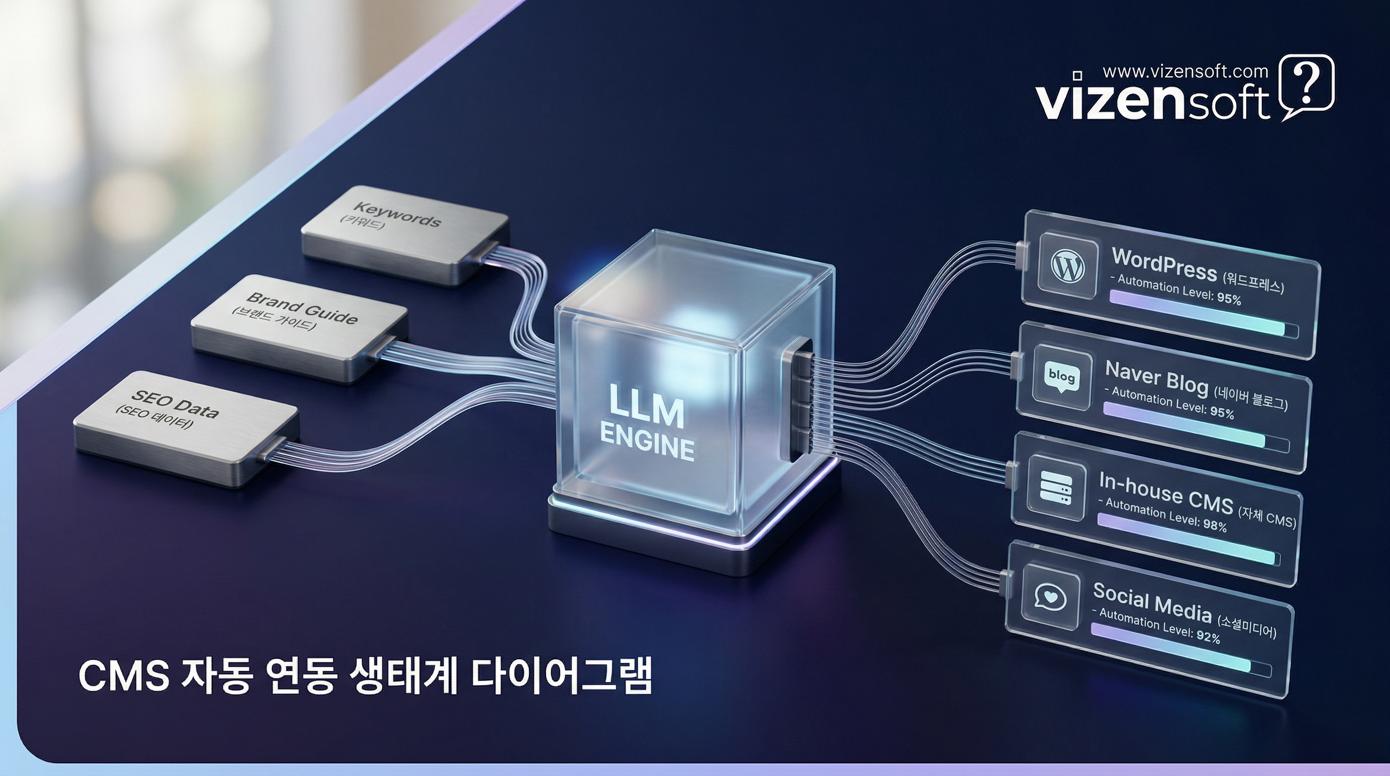 CMS(Content Management System)와 LLM의 연동은 AI 콘텐츠 자동화의 마지막 퍼즐 조각입니다. 아무리 훌륭한 콘텐츠를 AI로 생성해도, 그것을 적시에 올바른 채널에 게시하지 못하면 마케팅 효과는 절반으로 줄어듭니다. CMS 자동 게시 시스템은 이 문제를 해결합니다.