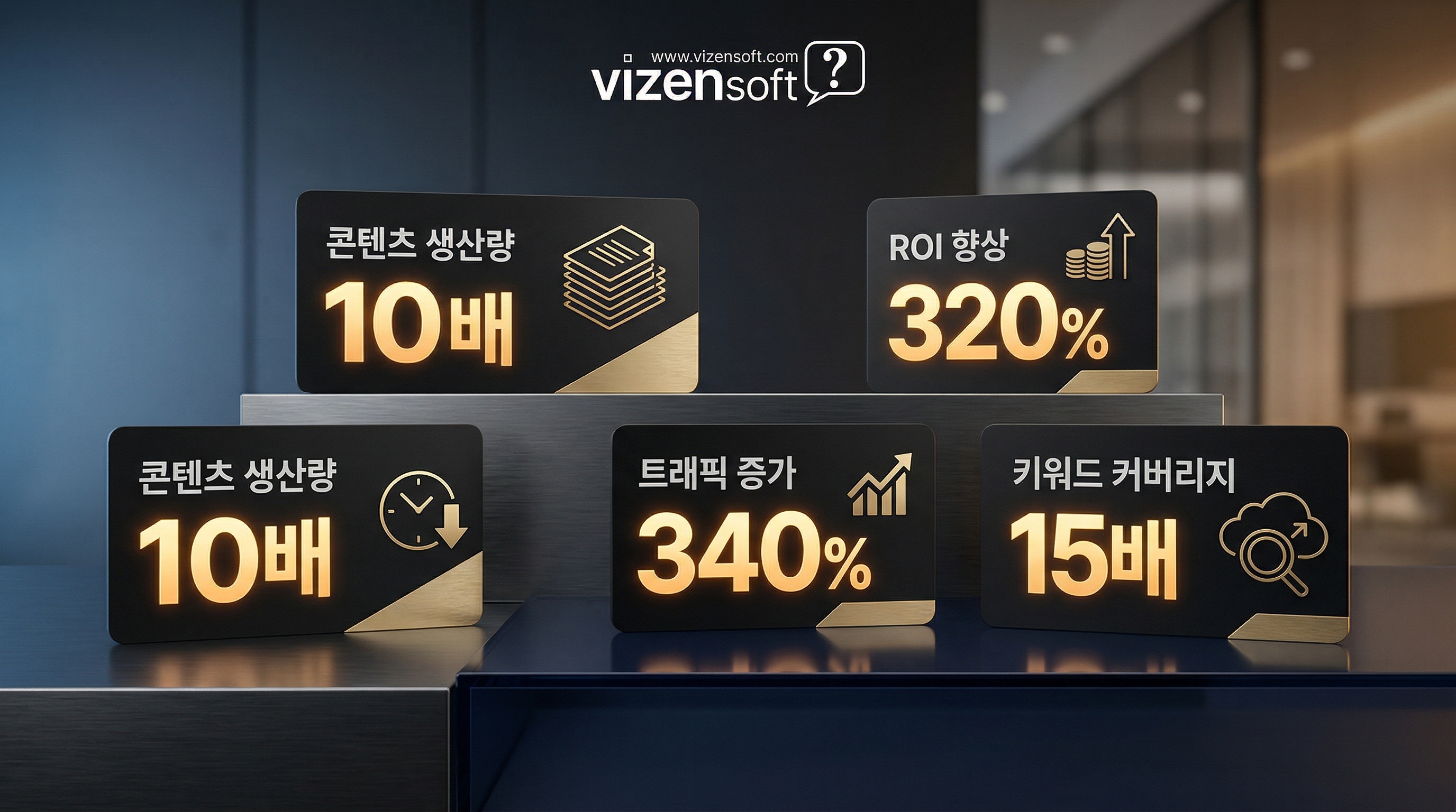 AI 콘텐츠 자동화 도입 시 기대할 수 있는 정량적 효과를 정리합니다. 이 수치들은 실제 도입 기업들의 평균 데이터를 기반으로 합니다.