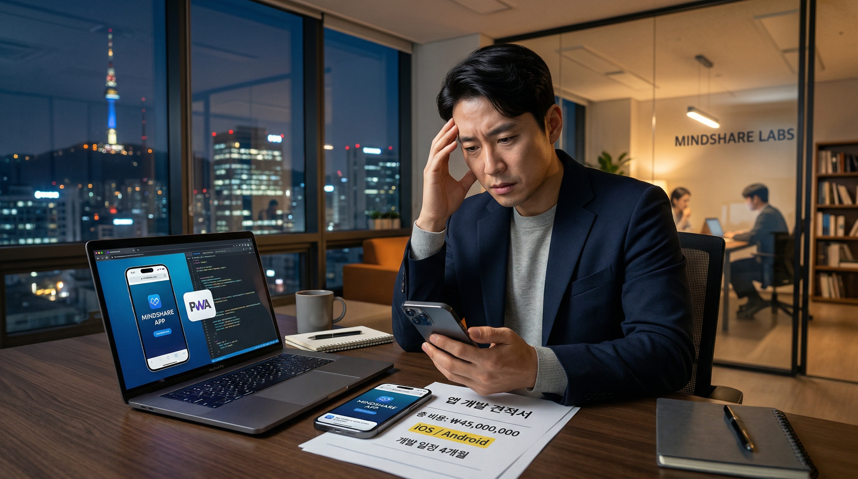 스타트업을 운영하거나 소규모 커머스 사업을 하고 계신 분이라면 한 번쯤 이런 고민을 해보셨을 겁니다. *"우리도 앱이 있으면 좋겠는데... 근데 앱 개발 비용이 너무 비싸잖아."* 실제로 iOS + 안드로이드 네이티브 앱을 동시에 개발하면 기본 기능만 넣어도 3,000만 원에서 많게는 1억 원 이상이 드는 게 현실입니다. 개발이 끝나도 유지보수, 앱스토어 심사, 업데이트 배포 등 끊임없는 비용과 시간이 소요되죠.