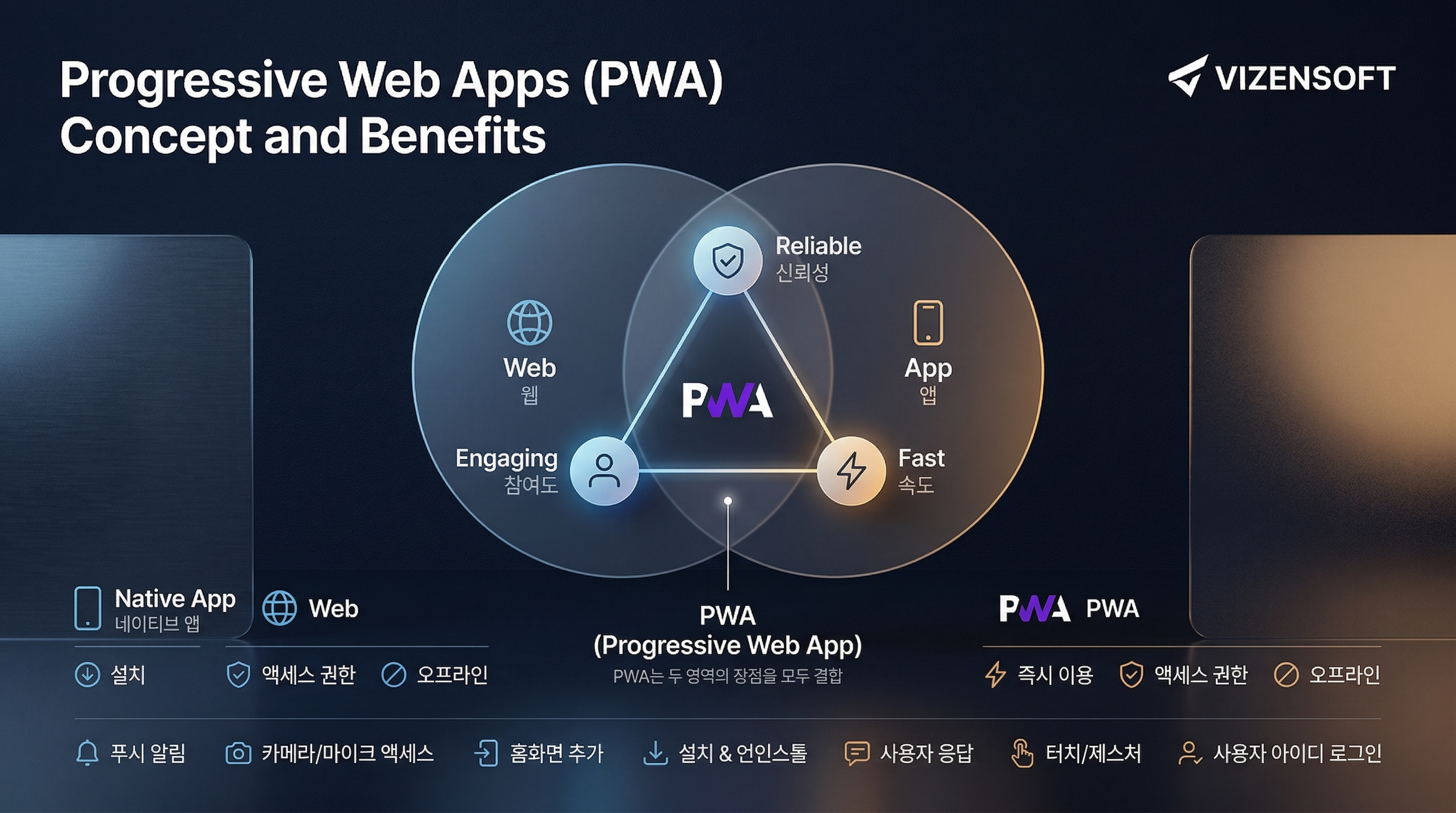 이 글에서는 PWA가 정확히 무엇인지, 어떤 기술로 작동하는지, 그리고 여러분의 비즈니스에 어떻게 적용할 수 있는지를 처음부터 끝까지 상세하게 안내해 드리겠습니다. 앱 개발 비용 문제로 고민하고 계신 분, 모바일 전환율을 높이고 싶은 분, 그리고 더 나은 사용자 경험을 원하는 모든 분께 이 글이 실질적인 해답이 되길 바랍니다. 💡