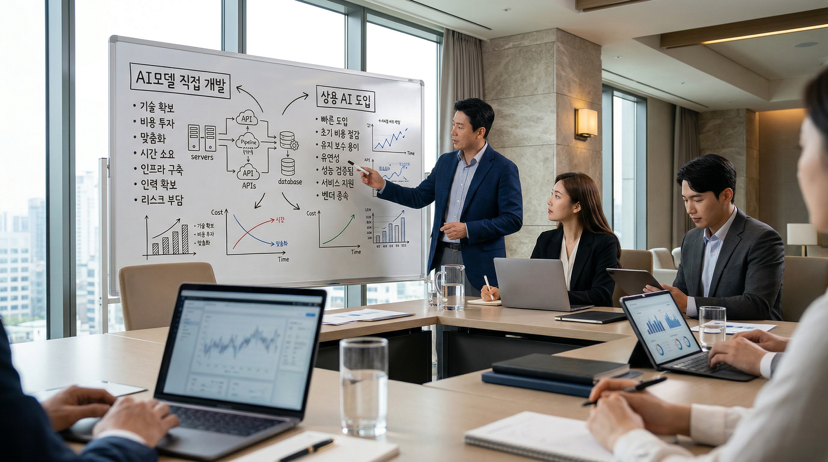 AI모델 직접 개발 vs 상용AI, 우리 회사에 맞는 선택은? - 요즘 경영 회의 자리에 빠지지 않는 단어가 하나 있습니다. 바로 **'AI 도입'**입니다. 국내외를 막론하고 크
