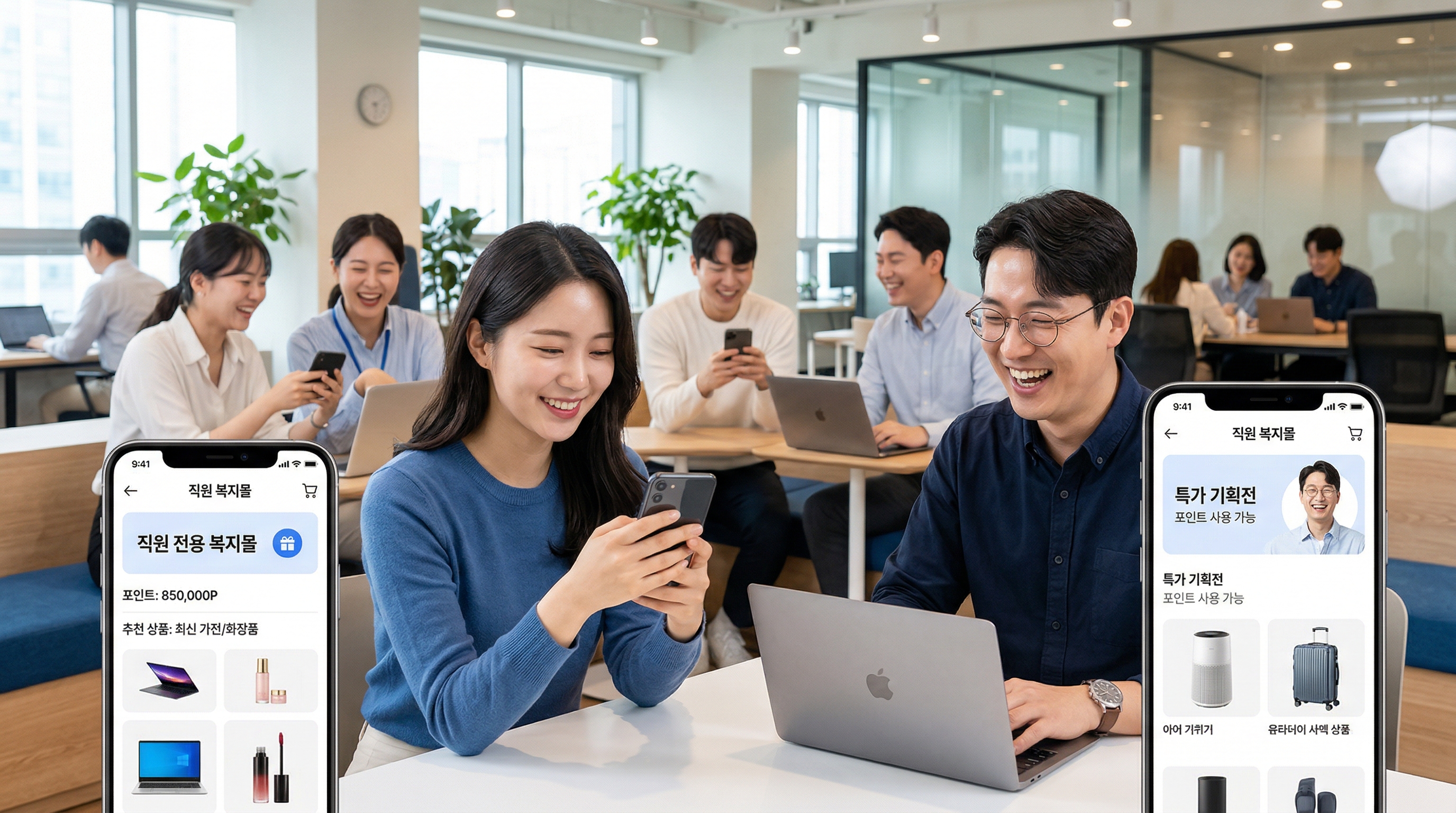 첫째, 임직원몰(Employee Mall)입니다. 자사 직원들을 위한 전용 쇼핑 공간으로, 회사에서 지급한 복지 포인트나 복지비를 사용해 상품을 구매합니다. 회사가 직접 운영하거나, 외부 업체에 위탁 운영하는 방식 모두 가능합니다. 직원 할인, 포인트 지급, 특가 상품 등이 핵심 기능입니다.