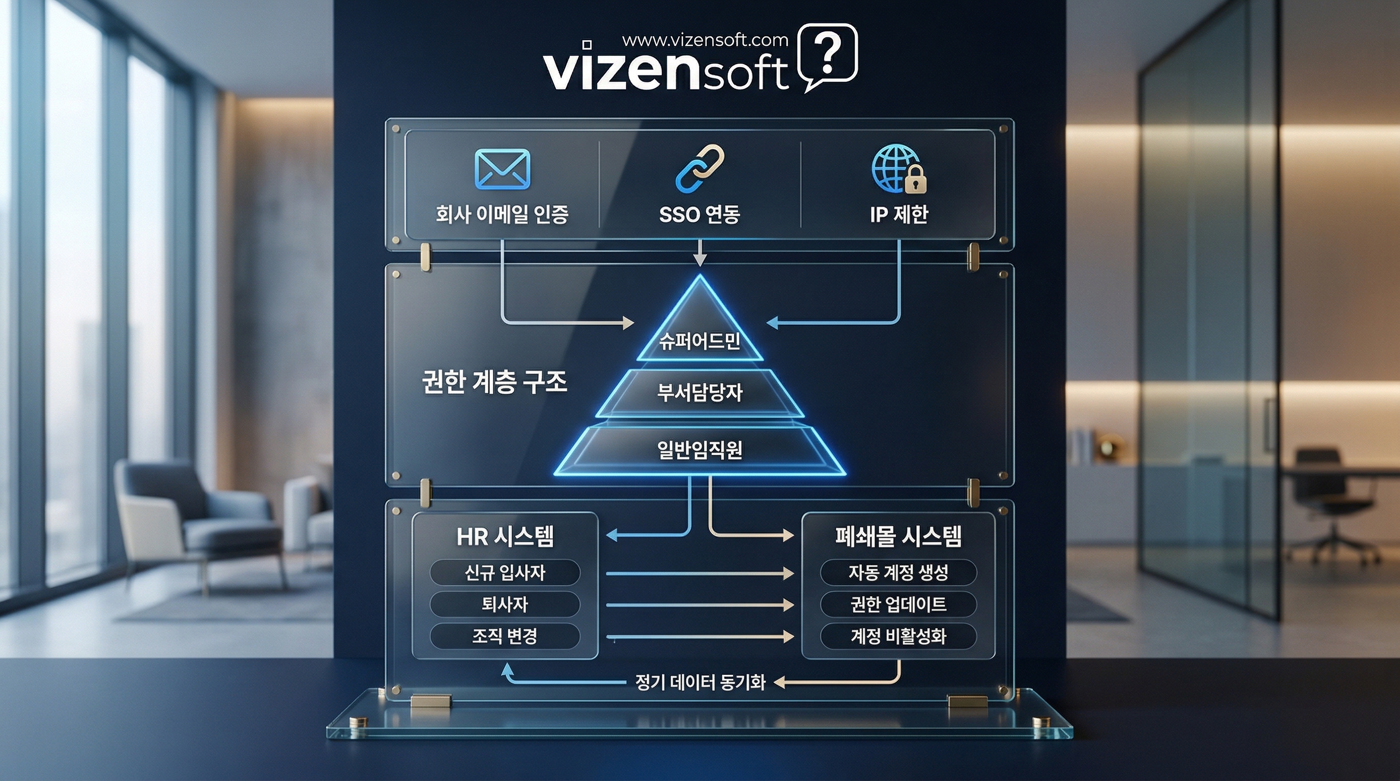 회사 이메일 도메인 인증: 가장 기본적인 방법으로, 회사 이메일(@company.com)로만 가입이 가능하도록 제한합니다. 퇴사자가 발생하면 계정 비활성화 처리가 빠르게 이루어져야 합니다.