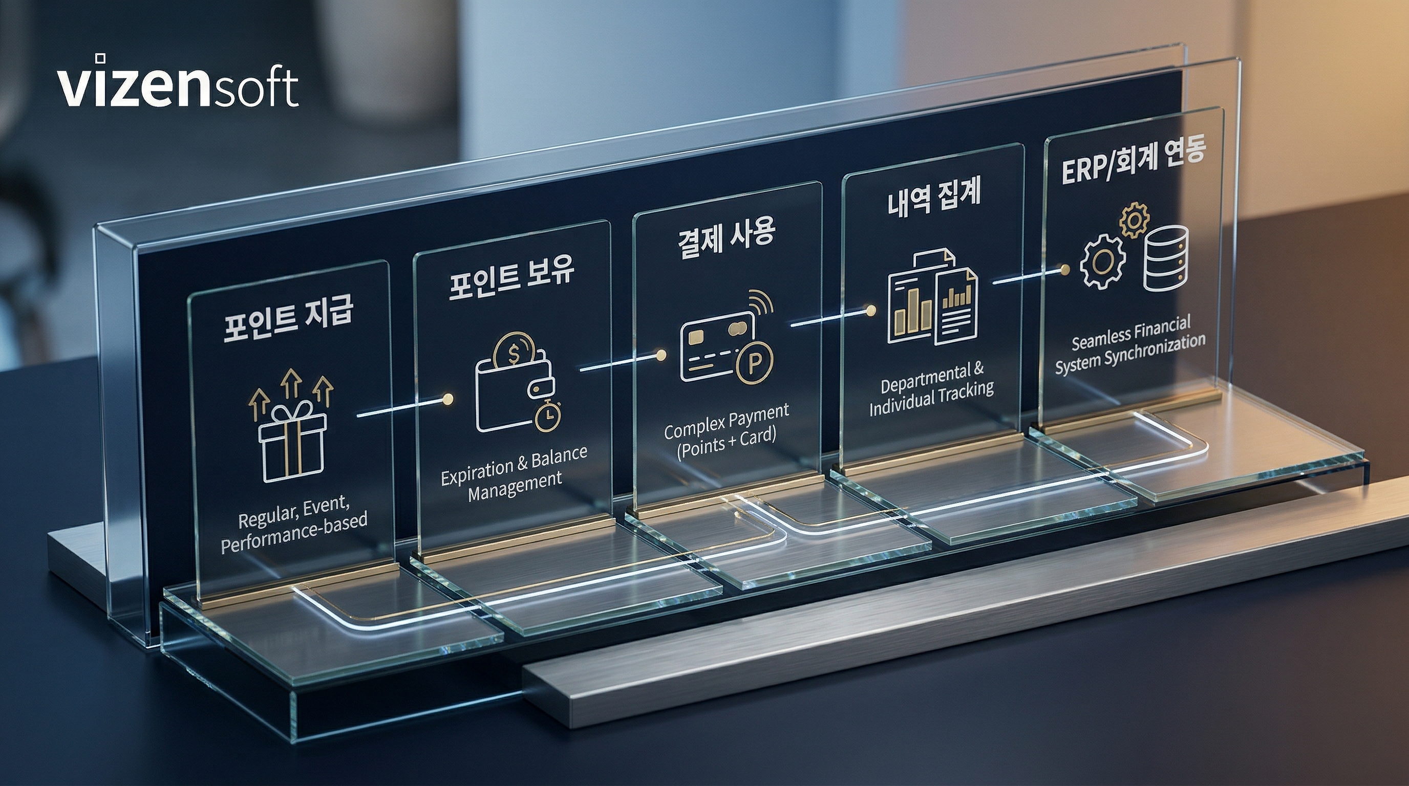 비젠소프트는 ERP 연동 경험을 보유하고 있어 복지 포인트 관련 회계 데이터를 기업의 기존 ERP 시스템과 자연스럽게 통합하는 커스텀 개발이 가능합니다. 이런 수준의 연동은 표준 임대형 솔루션에서는 거의 불가능하거나, 엄청난 추가 개발 비용을 요구합니다.