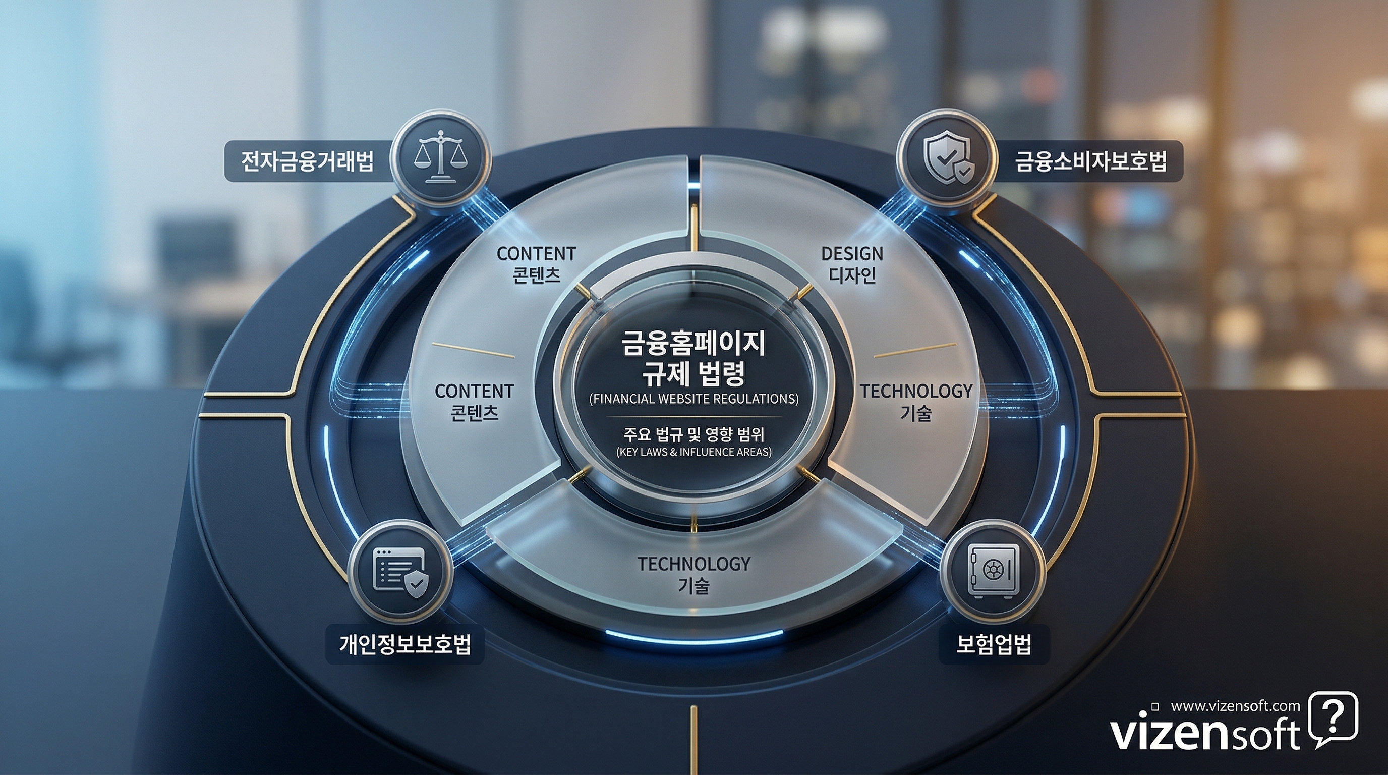 금융홈페이지와 보험웹사이트는 일반 기업 사이트와 근본적으로 다릅니다. 일반 회사의 홈페이지는 개인정보보호법 정도만 잘 지켜도 큰 문제가 없지만, 금융·보험 분야는 적용되는 규제 법령만 수십 개에 달합니다. 대표적인 규제 체계를 먼저 이해하는 것이 모든 전략의 출발점입니다.
