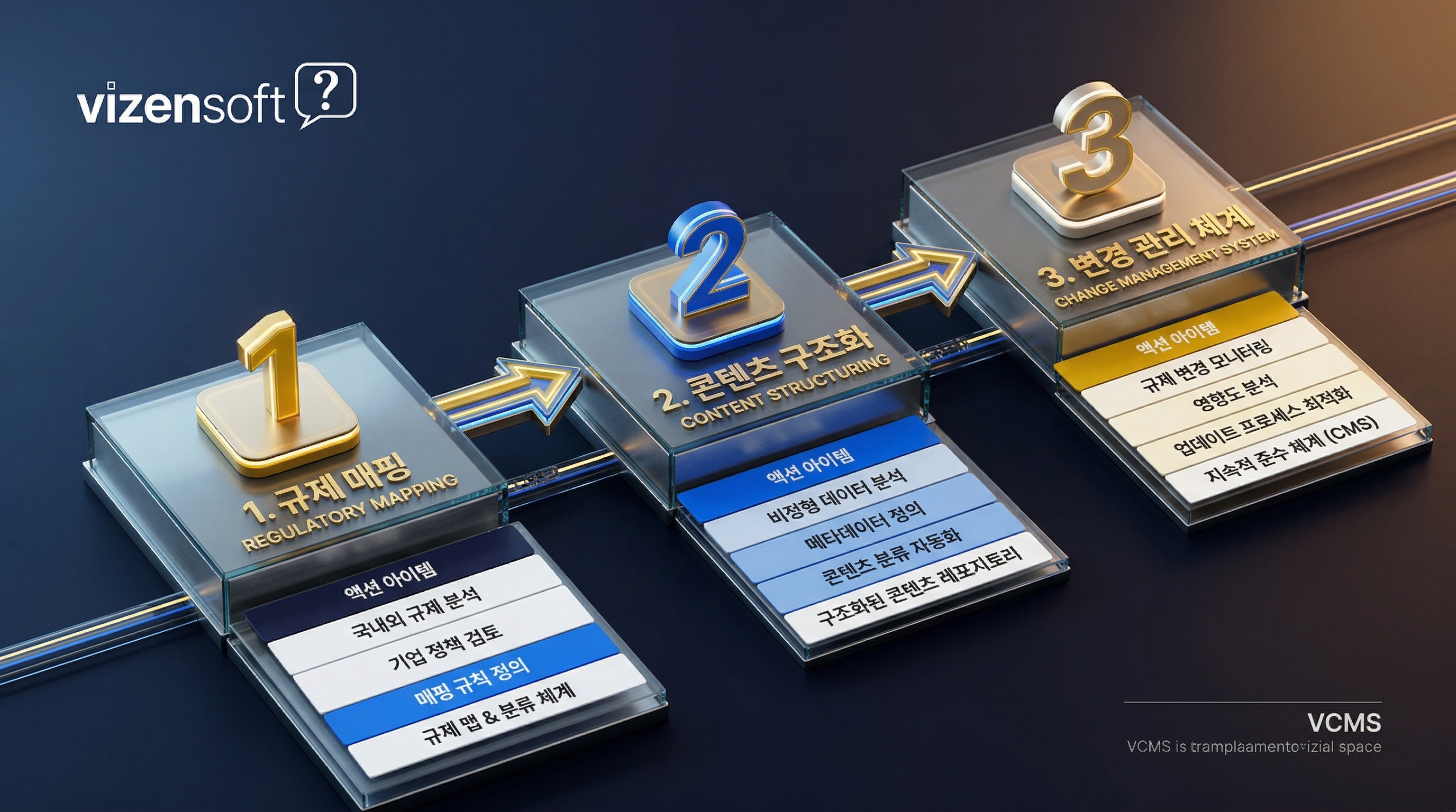금융 규제는 정기적으로 개정됩니다. 2021년 금소법 시행, 2023년 개인정보보호법 전면 개정처럼 대형 변화는 예고가 있지만, 금융위원회 고시나 금감원 세칙은 수시로 변경됩니다. 홈페이지 구축 시 규제 변경에 따라 콘텐츠를 신속히 업데이트할 수 있는 관리 시스템을 함께 구축하는 것이 필수입니다. 비젠소프트의 경우 자체 보유한 교정관리시스템(VCMS)을 활용하여 홈페이지 내 공시 문구, 약관, 필수 안내 사항의 버전 관리와 교정 이력을 체계적으로 관리할 수 있도록 지원합니다. 이는 금감원 검사 시 '관리 이력'으로도 활용 가능한 중요한 자산이 됩니다.