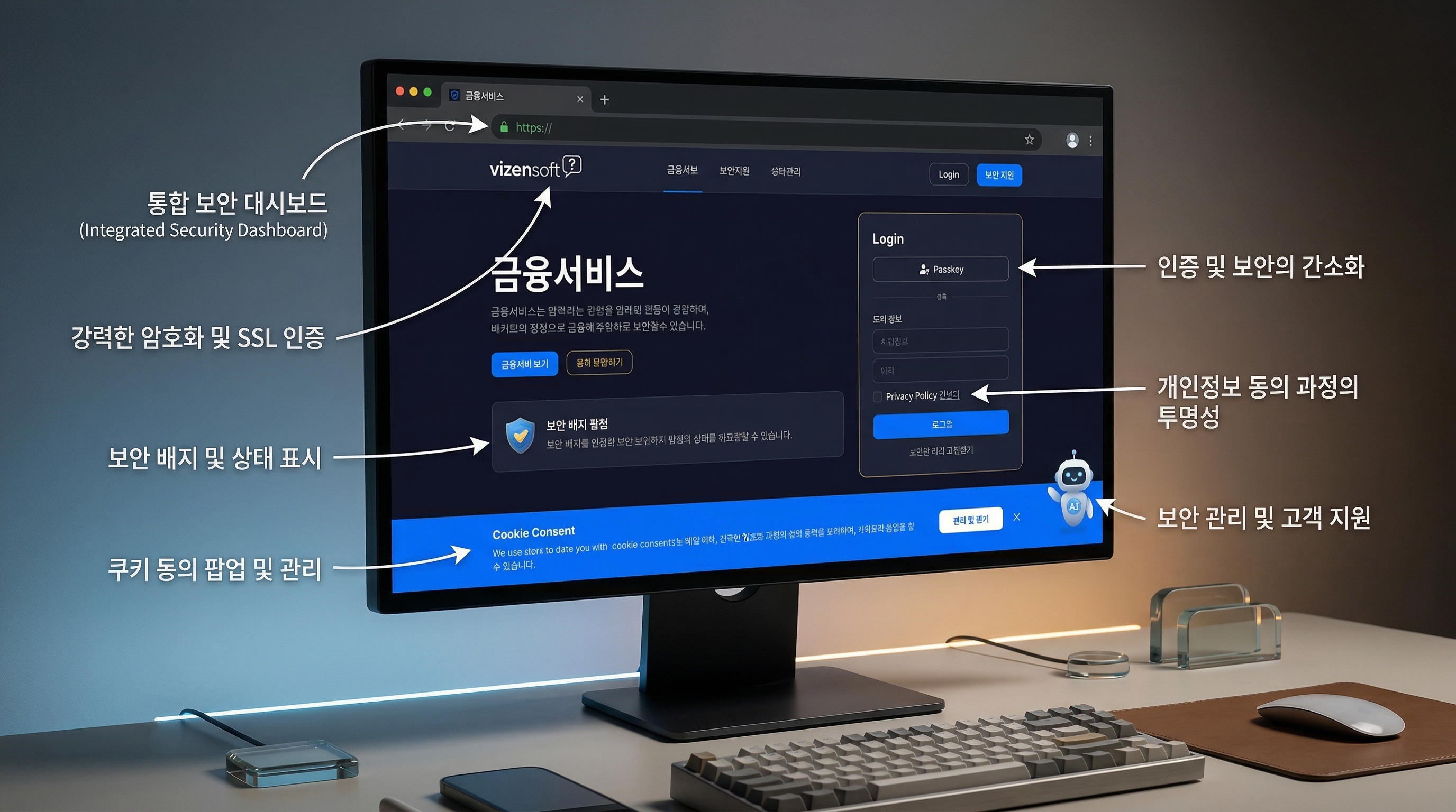 금융홈페이지에서 보안은 숨겨야 할 기술적 이슈가 아니라 전면에 드러내야 할 신뢰 자산입니다. 고객들은 눈에 보이지 않는 보안보다 눈에 보이는 보안을 더 신뢰합니다. 이 섹션에서는 보안과 개인정보보호를 UX에 자연스럽게 통합하는 전략을 살펴보겠습니다.