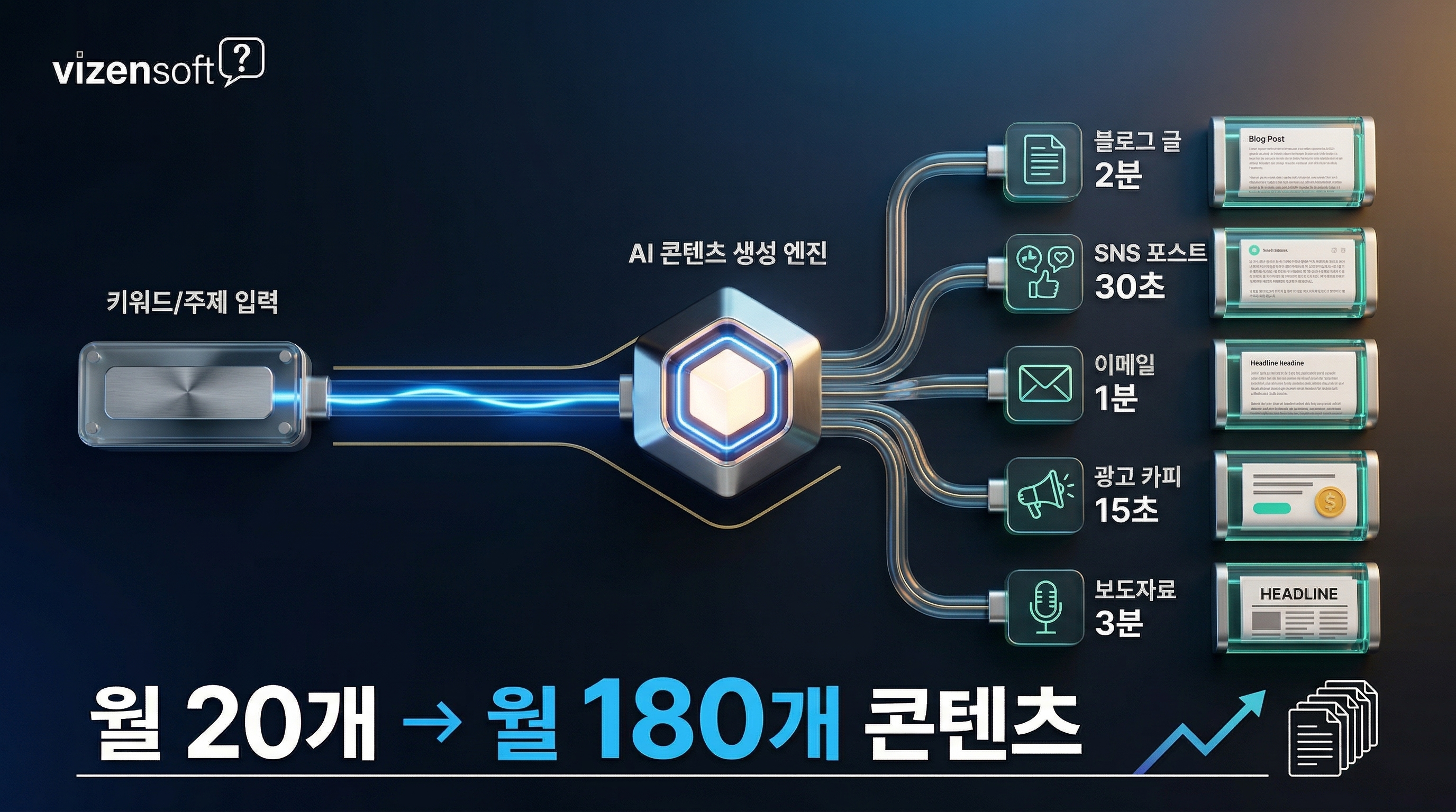 구체적인 사례를 들어볼까요? 서울의 한 뷰티 브랜드는 AI 콘텐츠 자동화 시스템을 도입한 뒤, 마케터 1명이 하던 콘텐츠 생산량을 월 20개에서 월 180개로 9배 확대했습니다. 블로그, 인스타, 카카오, 이메일 뉴스레터까지 모든 채널이 매일 새 콘텐츠로 채워지자 월간 오가닉 트래픽이 3개월 만에 240% 증가했습니다. 인력을 추가로 쓰지 않고 이 성과를 낸 것입니다.