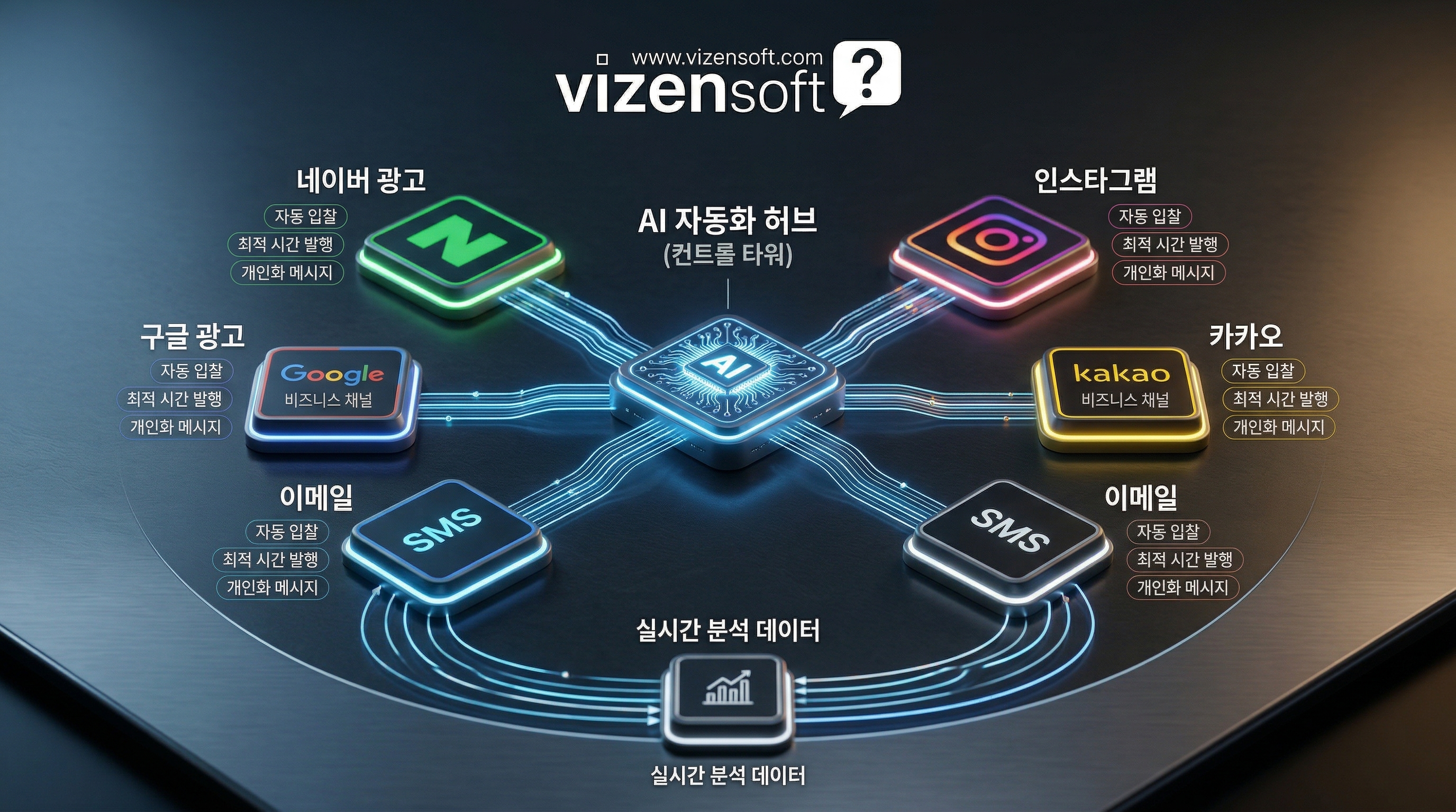 리타겟팅 자동화도 주목할 영역입니다. 웹사이트 방문자가 특정 상품 페이지를 보고 나갔을 때, AI가 해당 행동 데이터를 웹로그 시스템과 연동해 자동으로 리타겟팅 광고를 생성, 구글 디스플레이 네트워크나 소셜 미디어에 배포합니다. 비젠소프트의 웹로그 솔루션 및 전환추적 시스템과 연동하면 방문자 행동 데이터가 마케팅 자동화 시스템에 실시간으로 피드백되어, 더욱 정밀한 타겟팅이 가능해집니다. 단순히 "이 사람이 방문했다"를 넘어 "이 사람이 어떤 페이지에서 얼마나 머물다 어디서 이탈했는지"까지 파악하고, 그에 맞는 메시지를 자동으로 전달하는 것입니다.