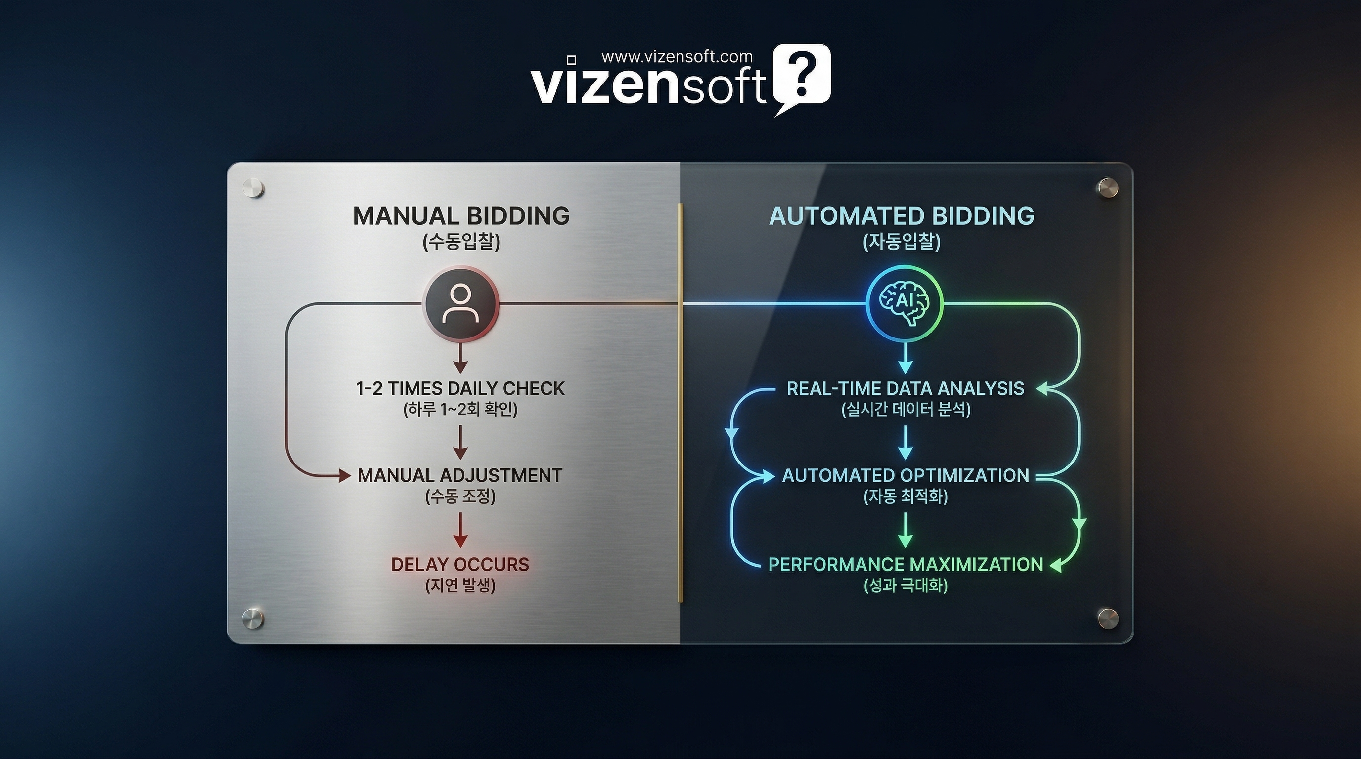 이 글에서는 네이버 검색광고 자동입찰이 무엇인지, 어떻게 활용해야 광고비를 실질적으로 30% 이상 절감할 수 있는지를 단계별로 상세하게 안내합니다. 또한 비젠소프트의 AI 자동입찰 시스템이 이 과정에서 어떤 역할을 하는지도 자연스럽게 살펴볼 예정입니다. 광고비 낭비에 지치셨다면, 이 글 하나로 완전히 다른 접근법을 가져가실 수 있을 겁니다.