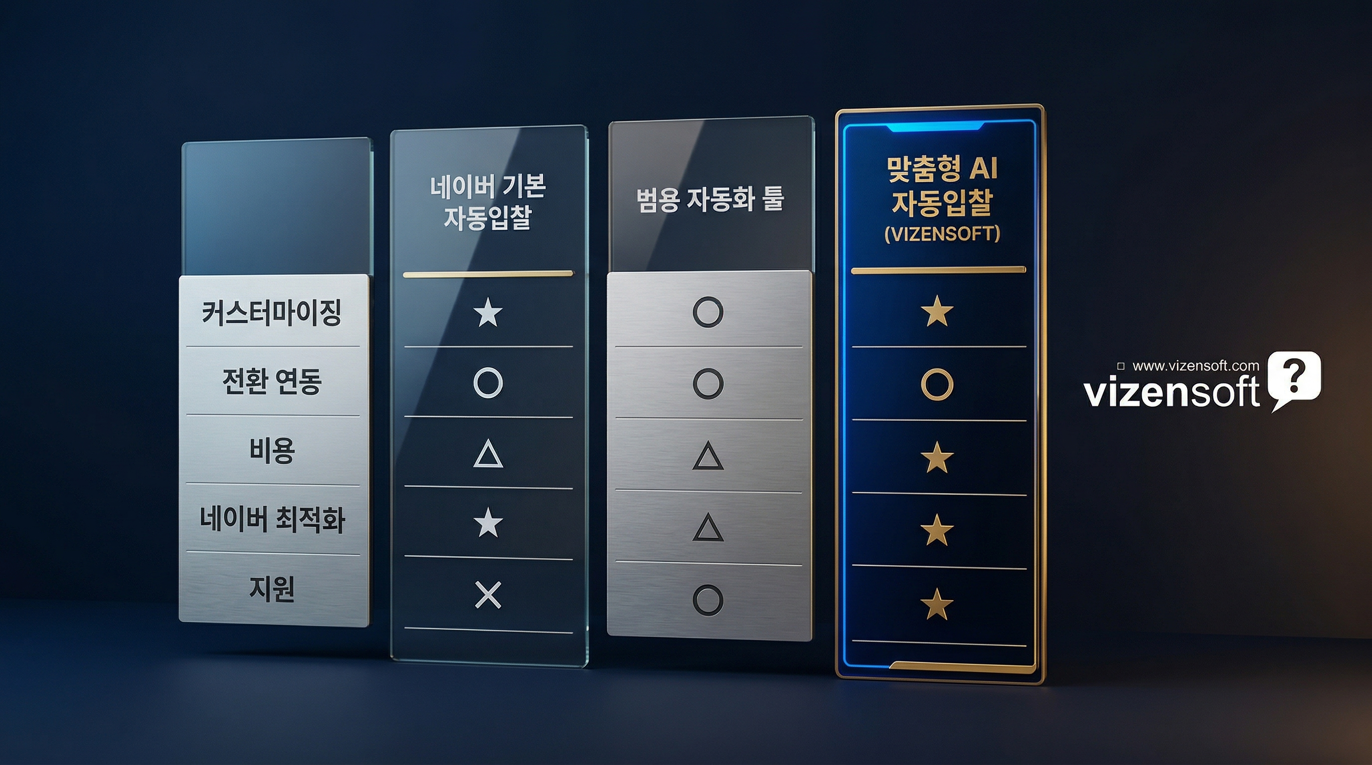 | 비교 항목 | 네이버 기본 기능 | 범용 자동화 툴 | 비젠소프트 맞춤형 AI |