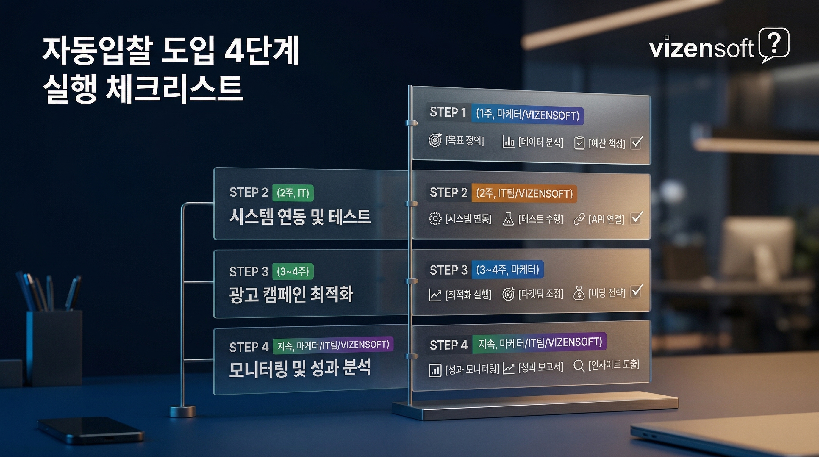 네이버 검색광고 자동입찰을 성공적으로 도입하기 위한 단계별 실행 체크리스트를 정리합니다. 이 순서대로 준비하시면 도입 후 빠른 시간 안에 성과 개선을 경험하실 수 있습니다.