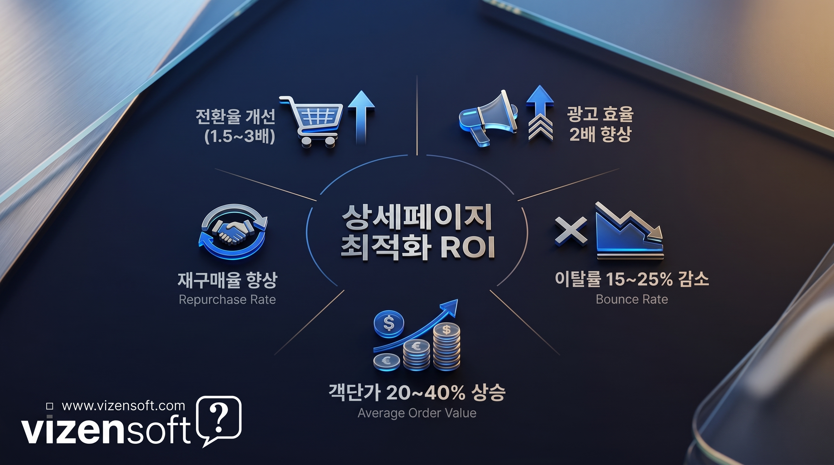상세페이지 설계가 중요한 또 다른 이유는, 광고 효율과 직결되기 때문입니다. 광고를 통해 유입된 방문자가 상세페이지에서 이탈하면 그 광고비는 고스란히 낭비됩니다. 반대로 같은 광고비로 상세페이지 전환율을 1%만 높여도, 매출은 기하급수적으로 늘어납니다. 쇼핑몰 매출을 높이는 가장 빠른 방법은 광고비 증액이 아니라, 상세페이지 전환율 개선입니다.