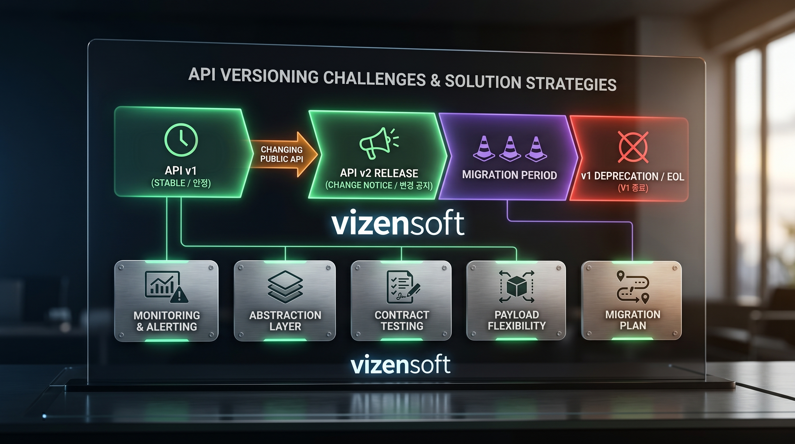 API 연동이 어려운 세 번째 이유는 바로 API 버전 관리(API Versioning)와 하위 호환성(Backward Compatibility) 문제입니다. 이 문제는 처음 연동할 때는 잘 보이지 않다가, 운영을 시작한 이후에 갑자기 터지는 시한폭탄과 같습니다.