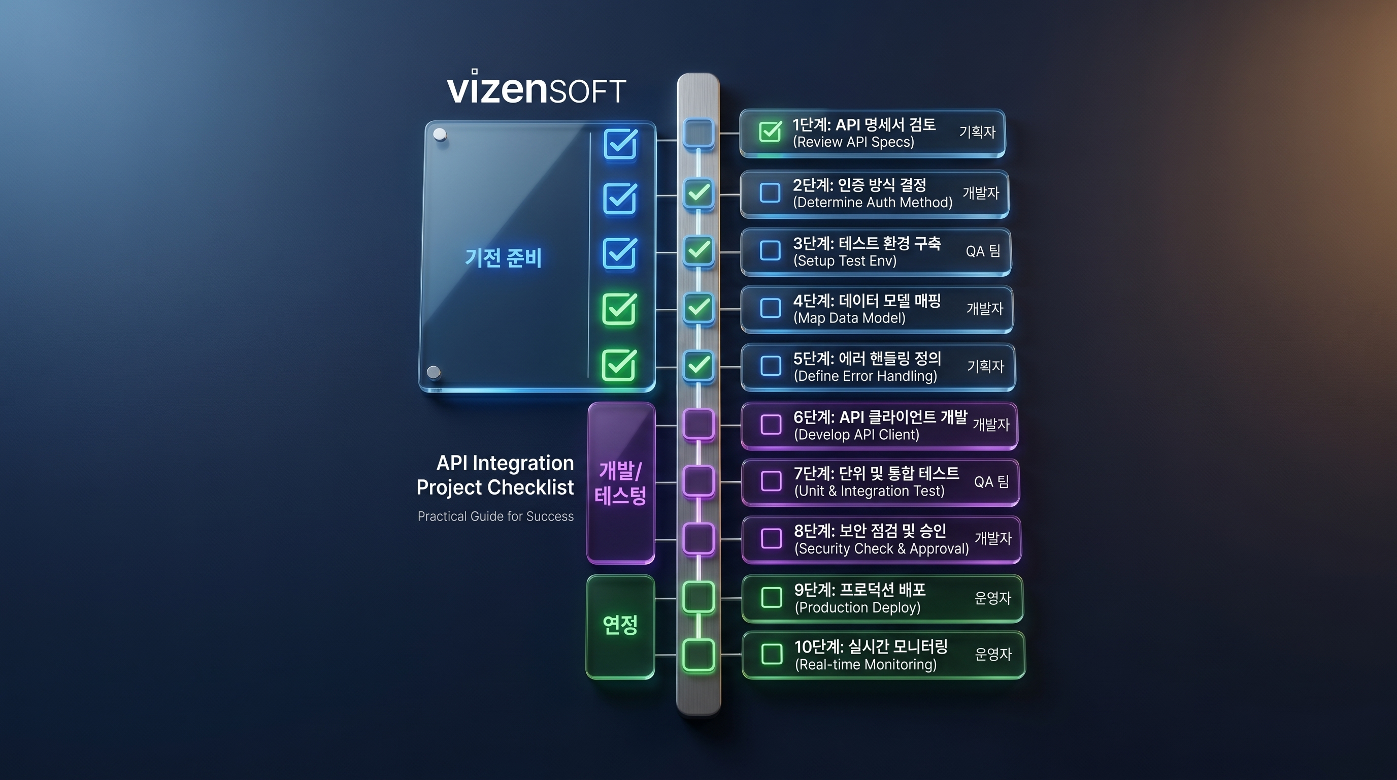 API 연동 프로젝트를 처음 시작하거나, 기존에 실패했던 경험을 딛고 다시 도전하려는 분들을 위해 단계별 실행 가이드를 제공합니다. 이 체크리스트를 프로젝트 킥오프 전에 반드시 확인하세요.
