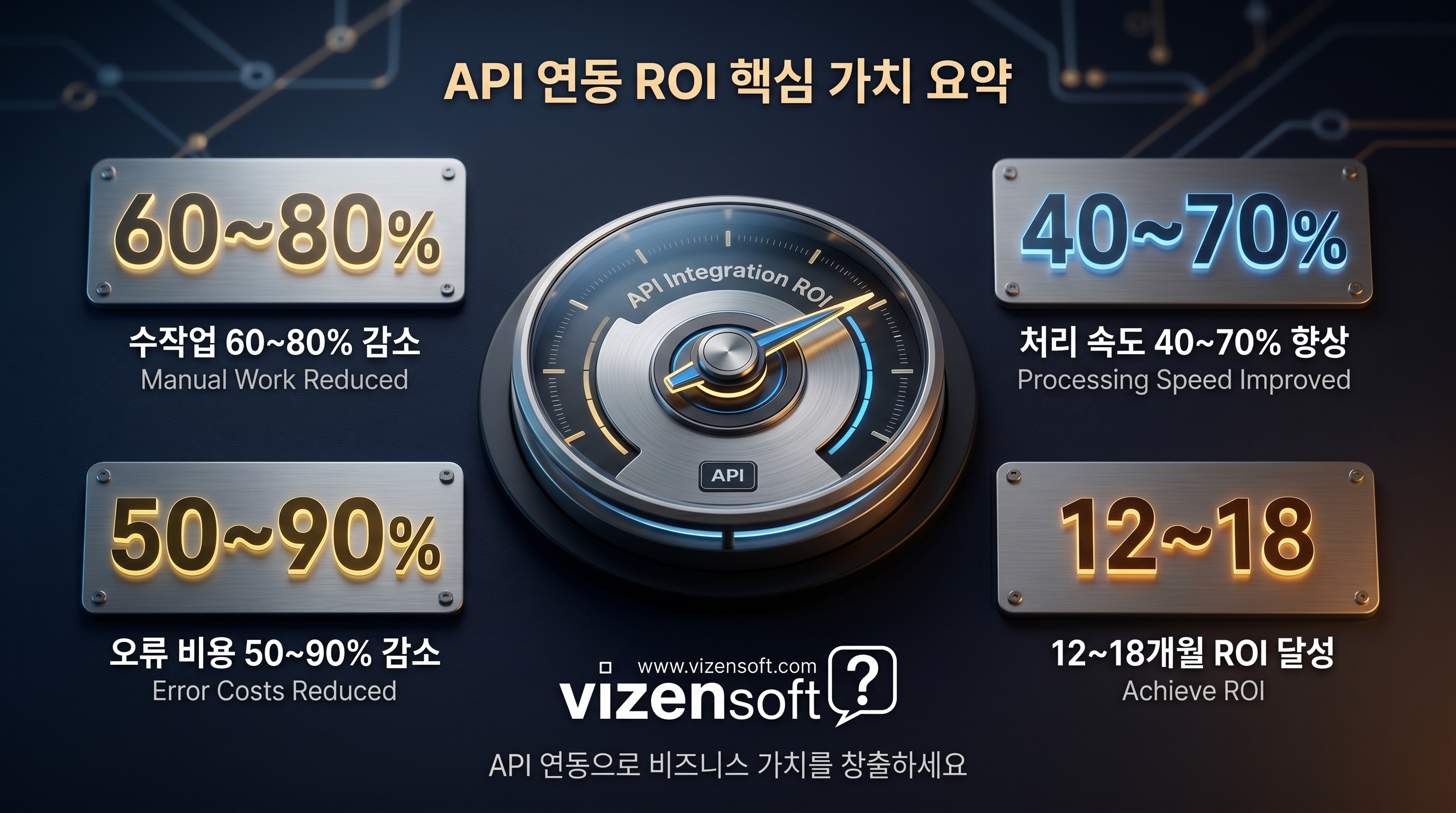 API 연동과 시스템 통합에 투자할 가치가 있는지 경영진을 설득해야 할 때, 구체적인 ROI(투자수익률) 수치가 필요합니다. 다양한 프로젝트 사례를 통해 확인된 평균적인 기대 효과를 정리했습니다.