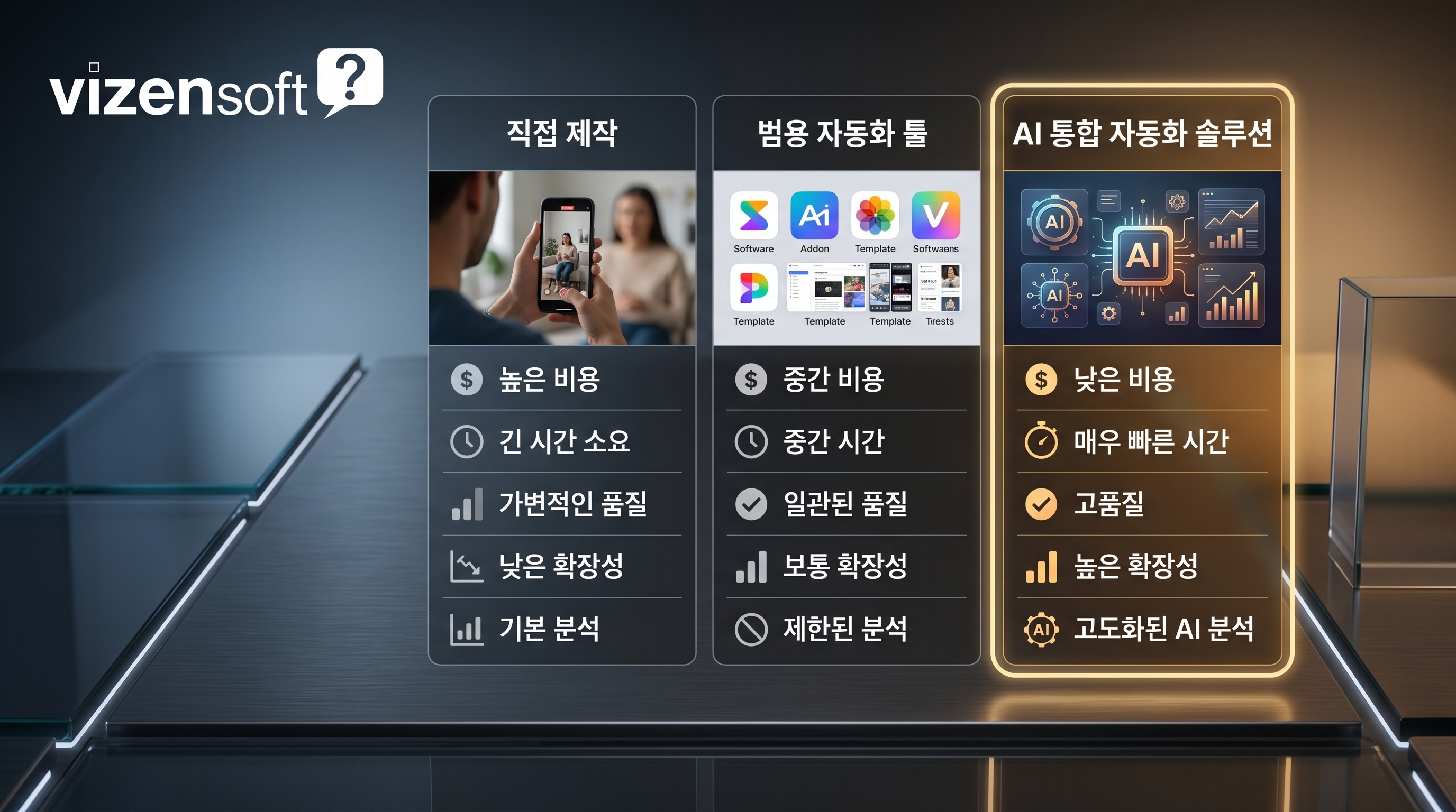 이 비교표에서 명확하게 드러나듯, AI 통합 자동화 솔루션은 초기 투자 비용이 범용 툴보다 높지만, 인건비 절감과 성과 최적화를 고려하면 총 비용 대비 효율(ROI)이 압도적으로 유리합니다.