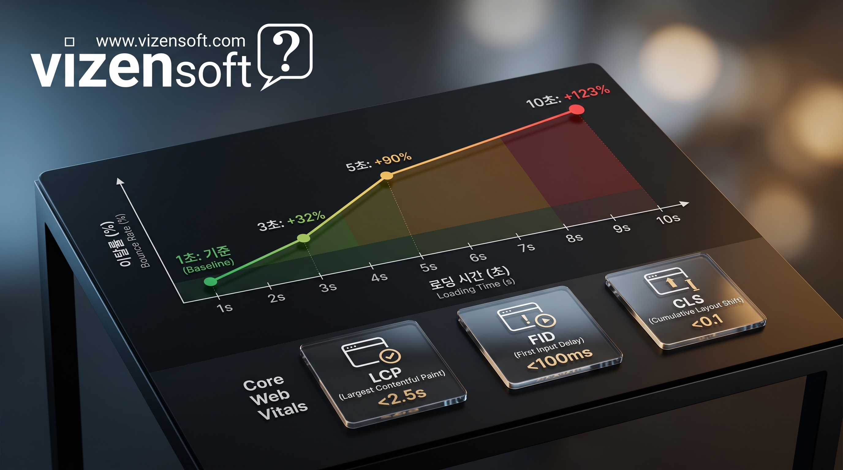 구글이 SEO 랭킹 지표로 공식 채택한 LCP(Largest Contentful Paint, 2.5초 이내), FID(First Input Delay, 100ms 이내), CLS(Cumulative Layout Shift, 0.1 이하) 세 가지 지표를 모두 충족해야 합니다. 이 기준을 만족하는 사이트는 그렇지 않은 사이트 대비 검색 노출 순위가 최대 32% 개선된다는 데이터도 있습니다.