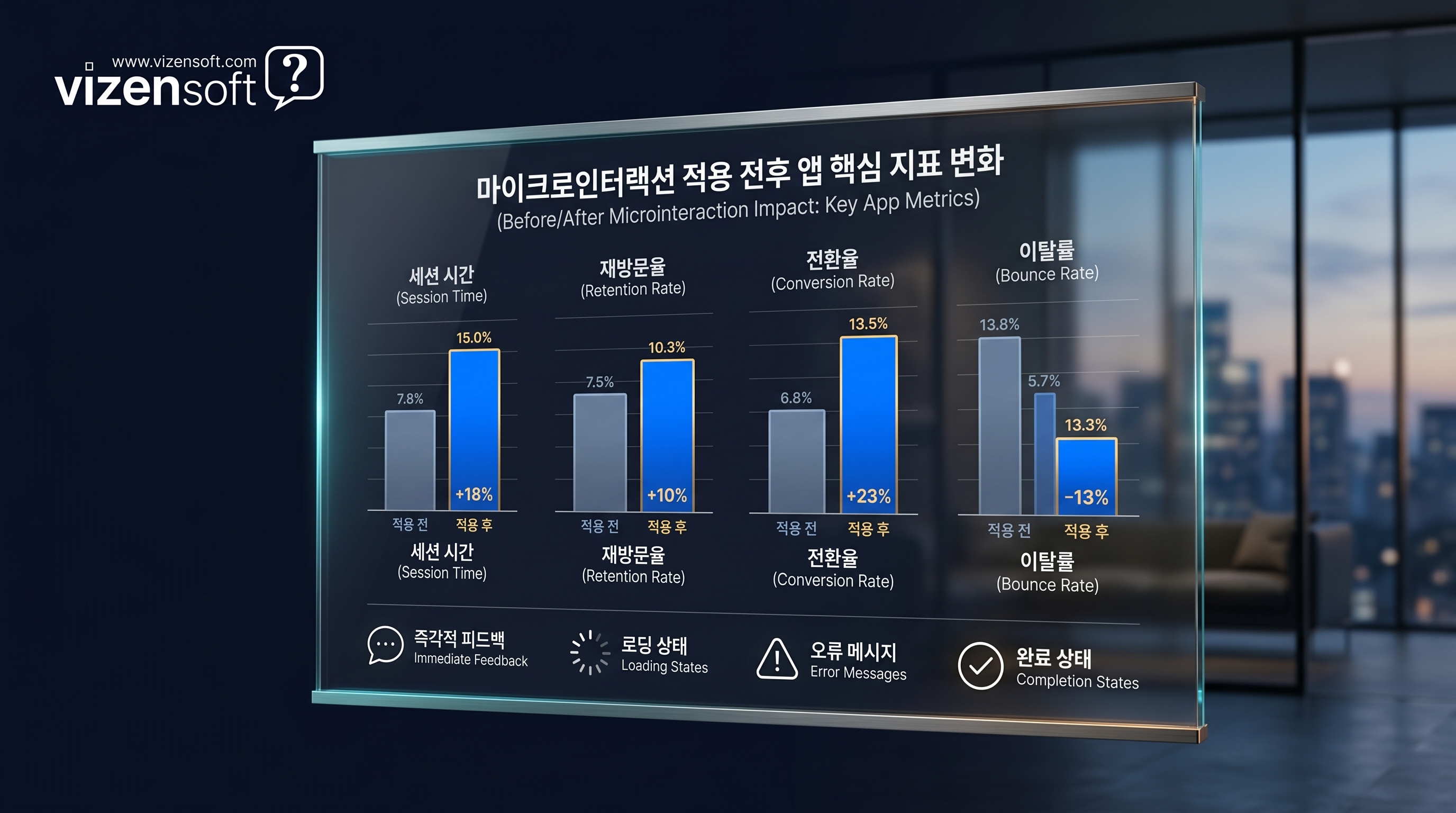 실제 데이터를 보면, 마이크로인터랙션을 적절히 설계한 앱은 그렇지 않은 앱 대비 사용자 세션 시간이 평균 21% 길고, 재방문율이 28% 높은 것으로 나타났습니다. 작은 애니메이션 하나가 비즈니스 지표를 바꿉니다.
