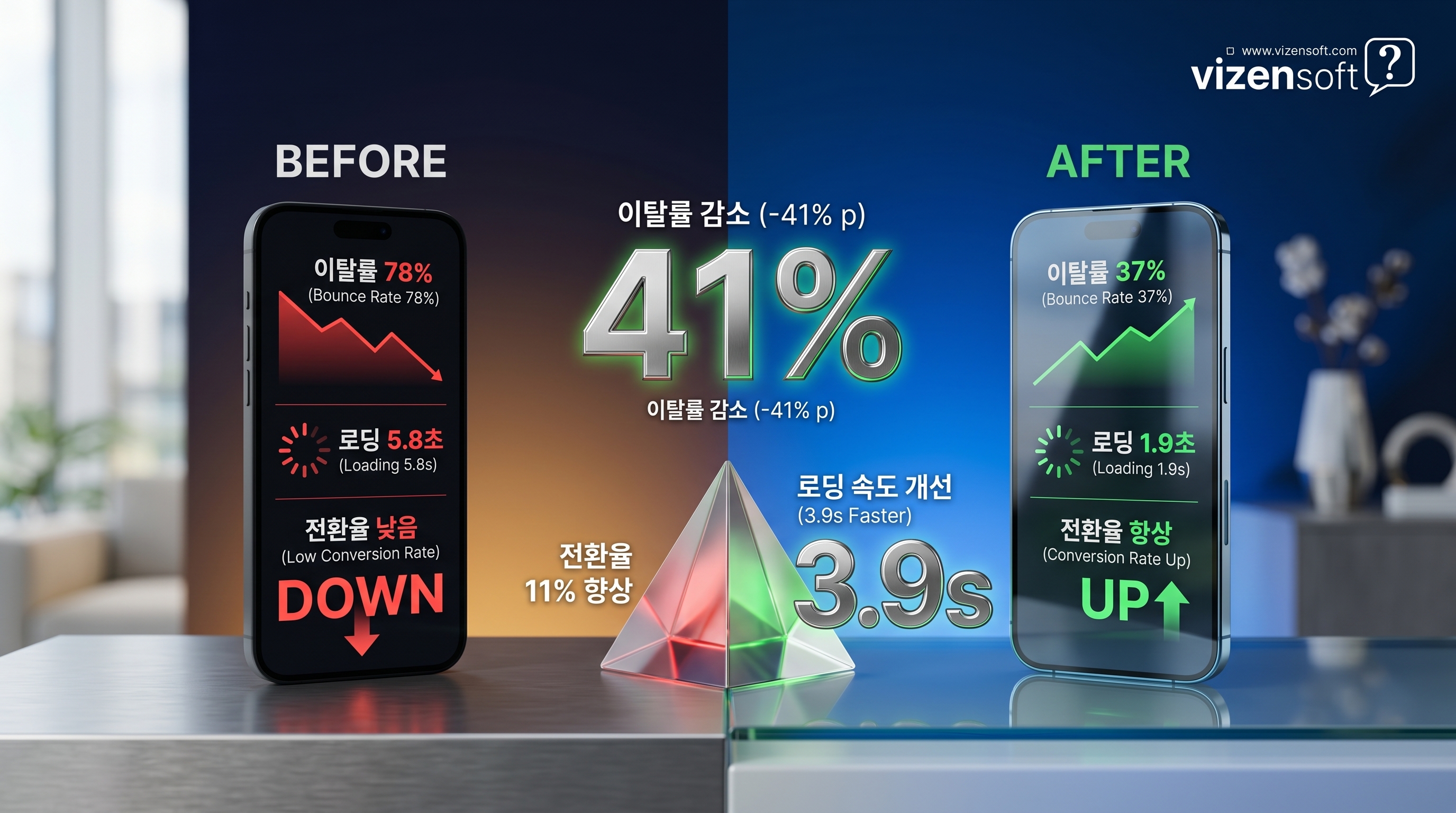 비젠소프트는 모바일 UX/UI 설계부터 데이터 기반 최적화, 모바일 앱·웹 개발까지 전 과정을 전문적으로 지원합니다. 이탈률을 절반으로 줄이는 여정, 혼자 시작하지 않으셔도 됩니다.